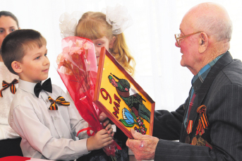 Но вот зазвучала музыка и воспитанники двух подготовительных групп, четко чеканя шаг, вошли в зал. Они рассказывали стихотворения, пели песни, благодарили солдат мая за жизнь, детство и тишину. А ветераны — фронтовик Александр Петрович Гладков и труженик тыла Юрий Павлович Сутягин слушали, смотрели на ребят, и слезы стояли в их глазах. Александр Гладков — участник битвы у Прохоровки, самого масштабного танкового сражения войны. Юрий Сутягин в 13 лет встал к станку на литейном заводе и выпускал снаряды. Ребята задавали вопросы ветеранам, интересовались, какие они любят песни, книги, какой наказ дадут им, будущему нашей страны.