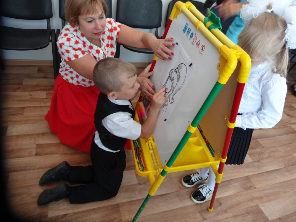 С каким интересом и усердием рисовали первоклашки портрет своей учительницы – это надо было видеть! Результатом все остались довольны - лица педагогов напоминали улыбающиеся смайлики. Затем ещё были конкурсы: книжного равновесия, конструирования, на ловкость и старание. Полтора часа пролетели, как одно мгновение. Дети настроились на учёбу, получили много положительных эмоций, стали дружить крепче.