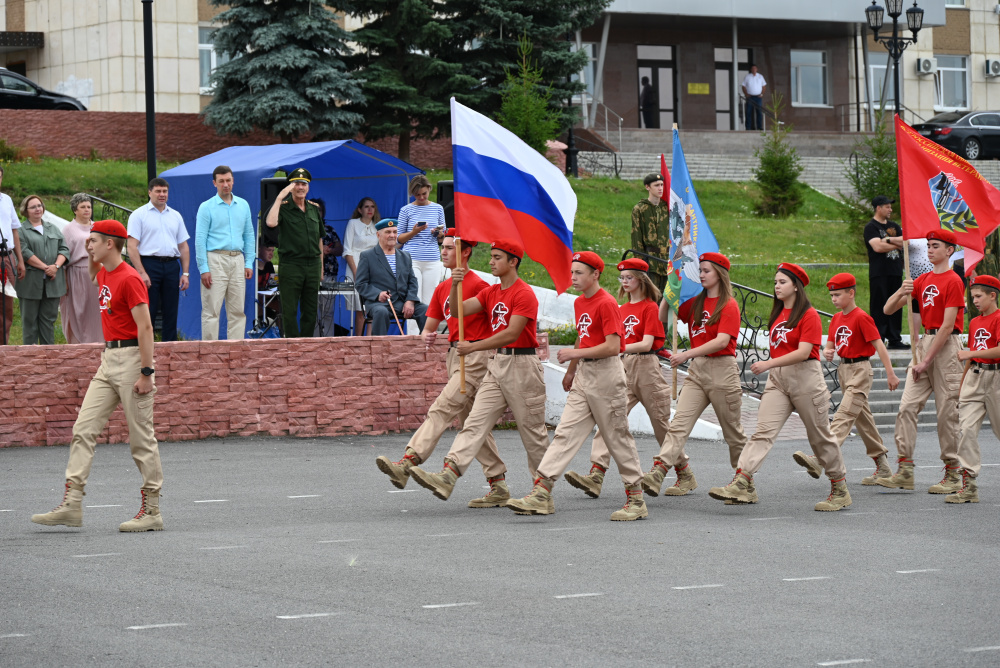 Специально для почетного ветерана ВДВ парадом прошли юнармейцы лагеря «Десантник» Катав-Ивановского района.