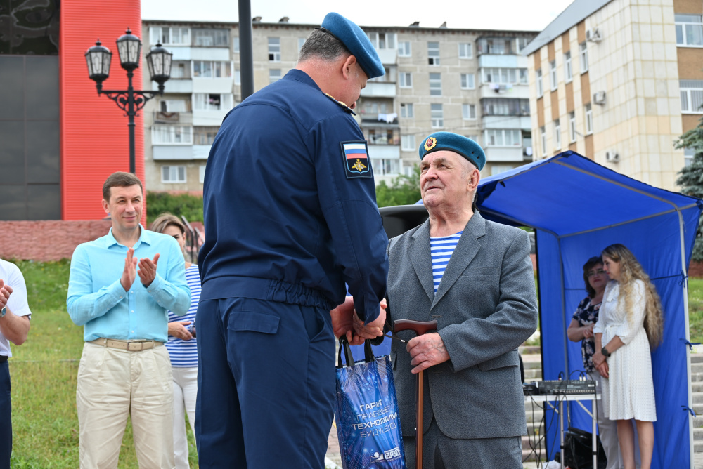На мероприятии присутствовал почетный ветеран, стоявший у истоков образования воздушно-десантных войск, первый десантник Катав-Ивановского района – Николай Храмов, сейчас ему 95 лет. Николай Алексеевич служил в Тульской дивизии в 1948-1951 годах, за годы службы совершил 22 прыжка.
