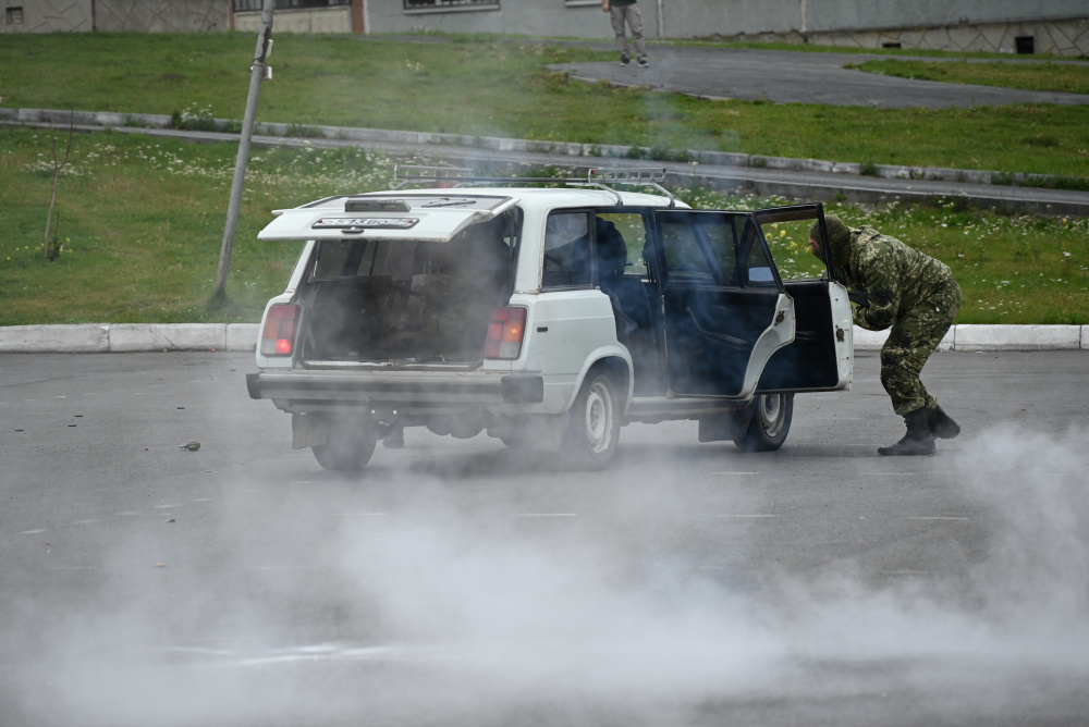 На митинге для десантников и жителей района выступил военный оркестр города Трехгорный-1. Главной фишкой праздника стали показательные выступления юнармейцев и военнослужащих из Трехгорного.