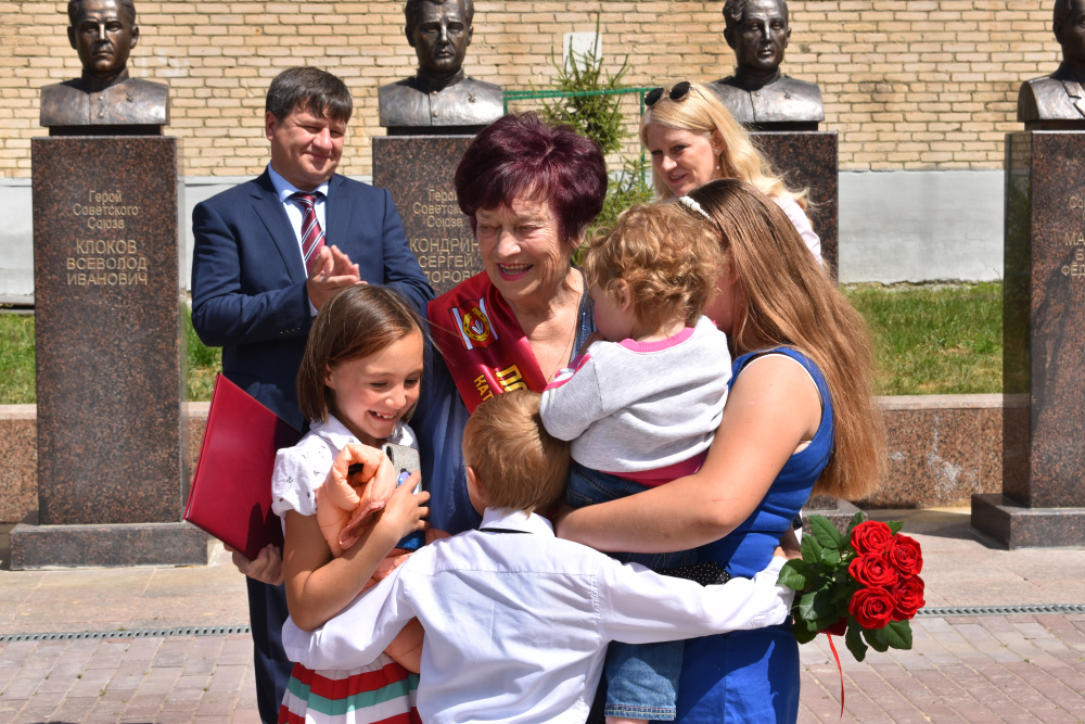 К Почётным гражданам обратились депутаты Елена Константиновна Киселёва, Валерий Александрович Ерёмин, Алексей Геннадьевич Воробьёв, Людмила Геннадьевна Горлова. Они вручили памятные юбилейные адреса виновникам торжества и красивые букеты из алых роз.