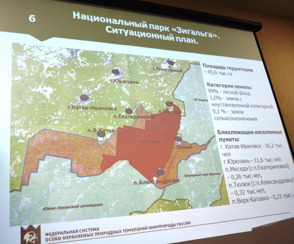Директор ФГБУ «Национальный парк» «Таганай» Алексей Михайлович Яковлев рассказал собравшимся о целях создания национального парка «Зигальга», предлагаемых границах, режиме охраны территории и его функциональном зонировании.