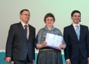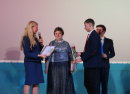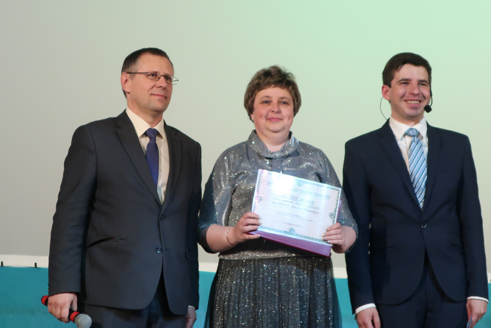 Ну, и, конечно же, какой юбилей без наград? Что же кому досталось, сейчас скажу. Благодарственные письма и премии от депутата Государственной Думы России Олега Колесникова получили: Ольга Бутусова, художественный руководитель вокальной группы «Аверс», Кристина Мажарова, художественный руководитель танцевального коллектива «Бумеранг», Лариса Авдеева, заведующая клубом «Жилполсёлок». Ценный подарок от Заксобрания региона достался Александру Мусину, ведущему церемонии. Почётная грамота Собрания депутатов Катав-Ивановского муниципального района вручена Елене Киселёвой, заместителю директора МУ «РМСКО» Катав-Ивановского муниципального района. Благодарность главы Катав-Ивановского городского поселения - Ирине Кучиной, руководителю клуба по интересам ЦД «Октябрь» МУ «РМСКО» Катав-Ивановского муниципального района. Почётная Грамота Совета депутатов Катав-Ивановского городского поселения – Дине Хатимовой, руководителю клуба по интересам ЦД «Октябрь» МУ «РМСКО» Катав-Ивановского муниципального района. От главы района Евгения Киршина коллектив премирован сертификатом на 50 тысяч рублей, от главы города Ивана Норко – сертификатом на 20 тысяч рублей.