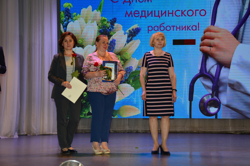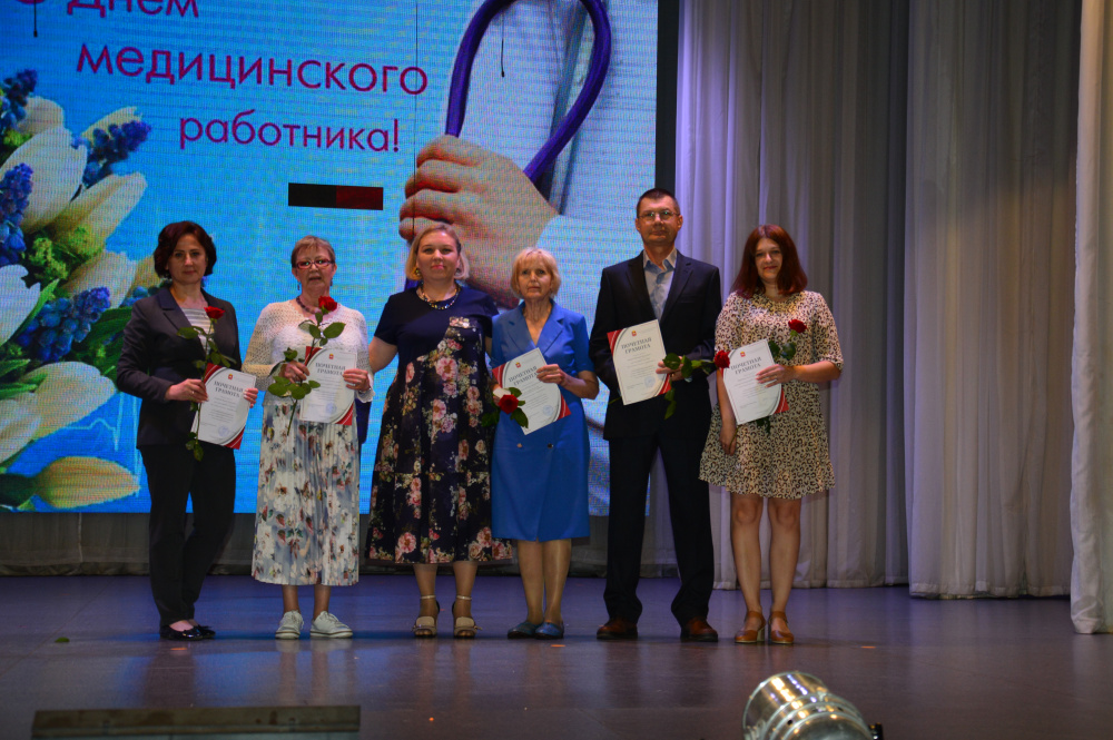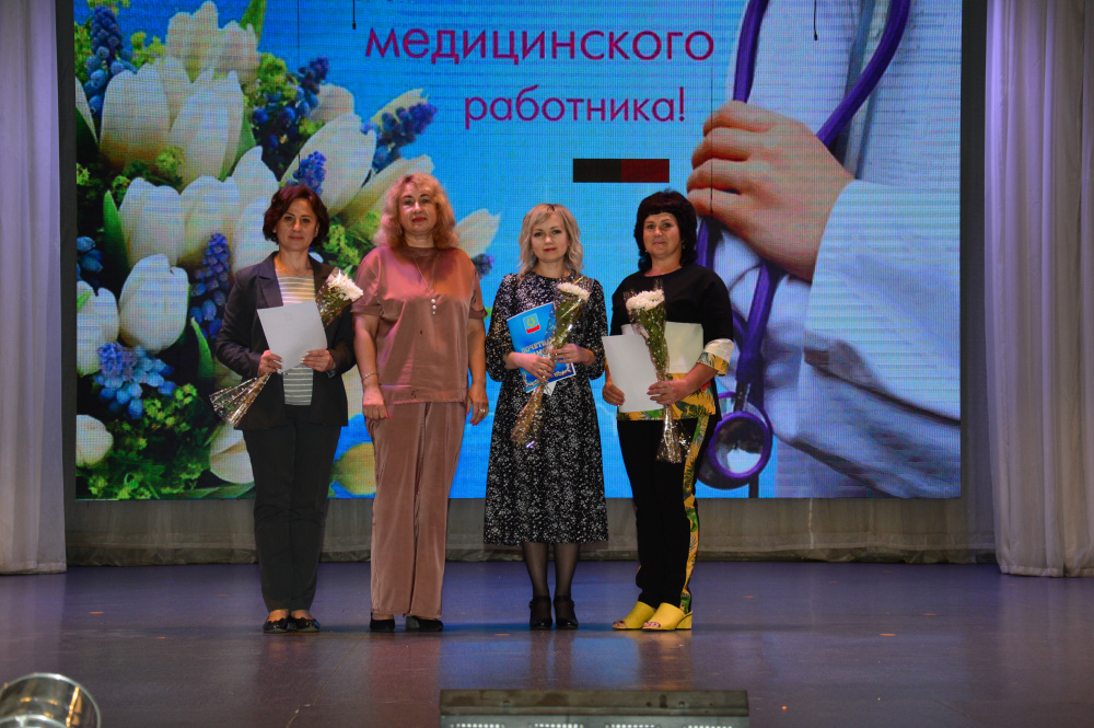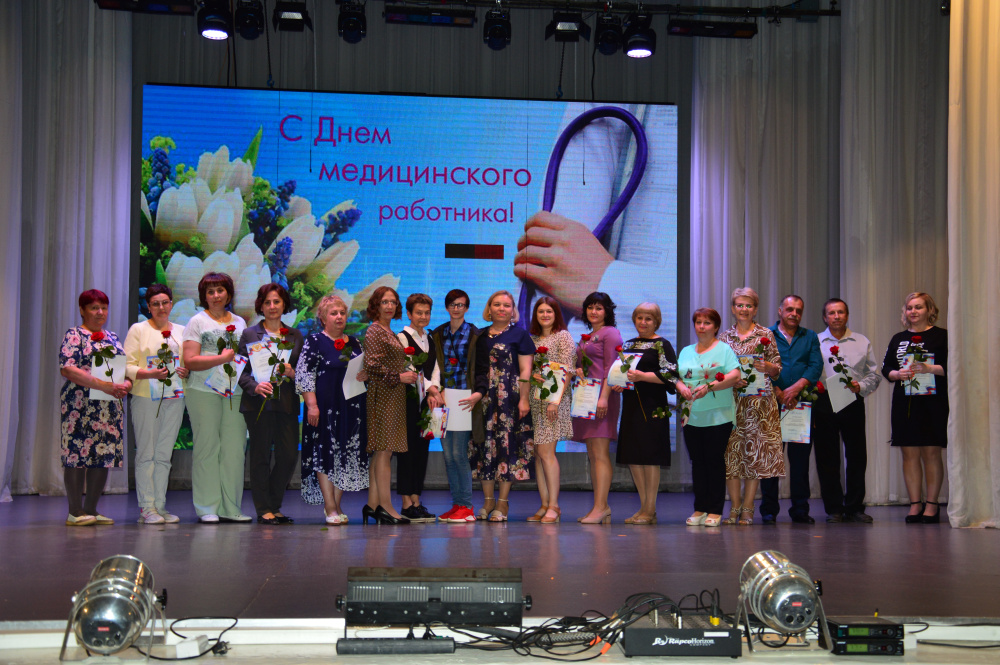 По традиции в зале дворца культуры в преддверии профессионального праздника медицинские работники принимали поздравления, много добрых слов признательности, уважение и благодарности звучало для всех работников, а лучшие из них были отмечены почетными грамотами и благодарностями всех уровней.