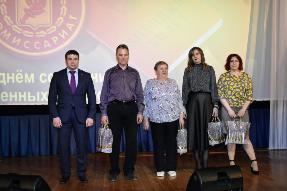 Памятными подарками от депутата Законодательного собрания Челябинской области, почетными грамотами и благодарственными письма Главы муниципалитета, Собрания депутатов Катав-Ивановского муниципального района, Глав и председателей Советов депутатов городов Катав-Ивановска, Юрюзани и Усть-Катава, Катав-Ивановского местного отделения партии "Единая Россия" и Союза десантников России по Катав-Ивановскому району и городу Усть-Катав, награждены заслуженные работники и ветераны военного комиссариата.