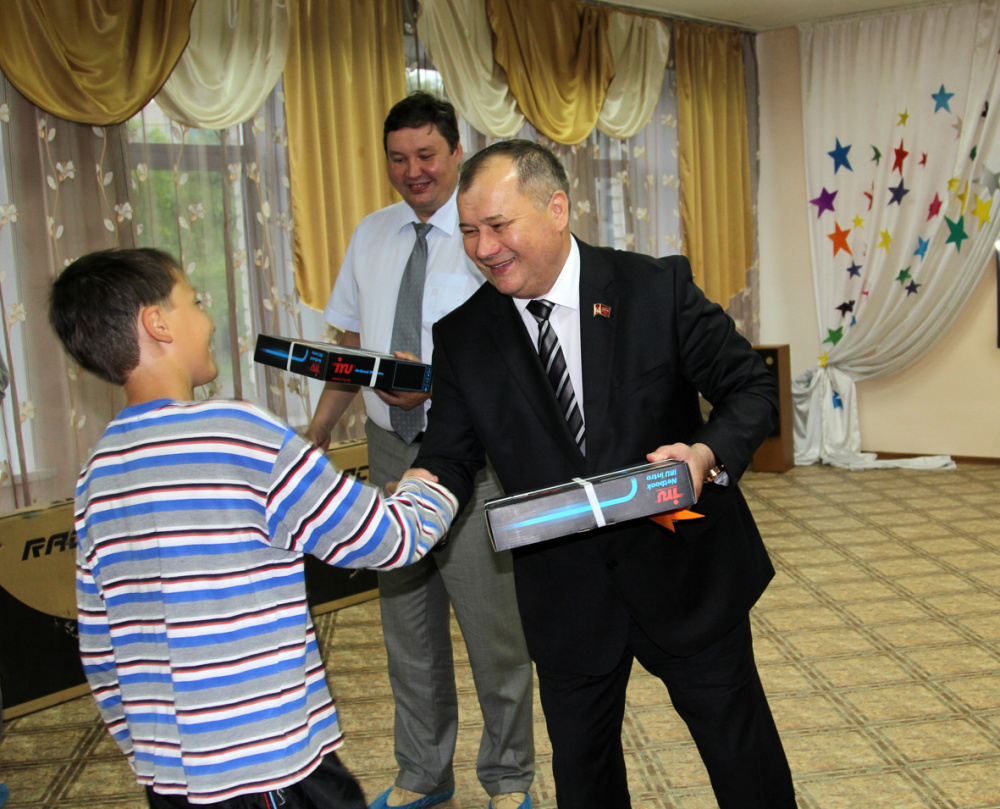 А Евгений Киршин и Евгений Калиничев вручили ребятам девять ноутбуков. И надо было видеть лица счастливчиков: они сияли от счастья.