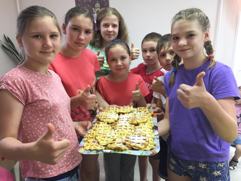 Очень много веселых конкурсов ожидало наших ребятишек с воздушными шарами и мячами, а все для того, чтобы вернуть красоту волшебному зонтику. Со всеми заданиями они справились, бегали, прыгали, пели песни, громко шумели, победили скуку и лень и вернули веселое настроение Зонтику и всем участникам праздника. А в конце праздника всех детей ждал сюрприз – корзинка со сладостями и огромный торт. Но на этом сюрпризы не закончились, ведь после обеда воспитанники приняли участие в кулинарном мастер – классе по изготовлению венских вафель. Каждый смог попробовать собственноручно приготовленные вкусняшки.