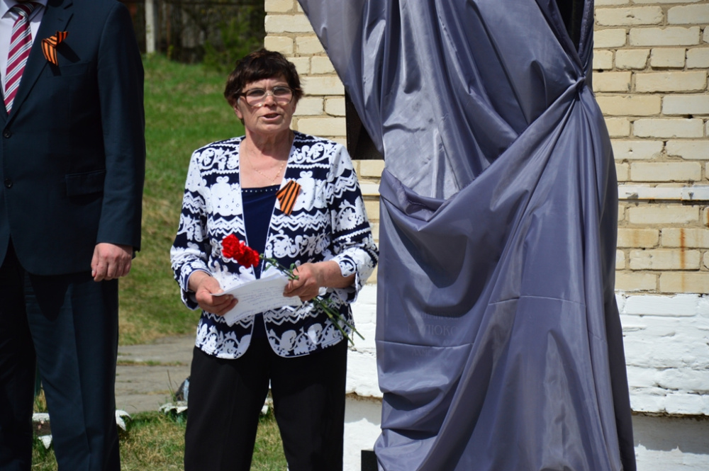 Наталья Яшина поблагодарила всех кто помогал в установке памятника, главу района Евгения Киршина, председателя Собрания депутатов Евгения Калиничева, скульптора из Юрюзани Александра Чернецова и добавила, что с этого момента митинги, посвященные Дню победы, будут проходить здесь у этого памятника.