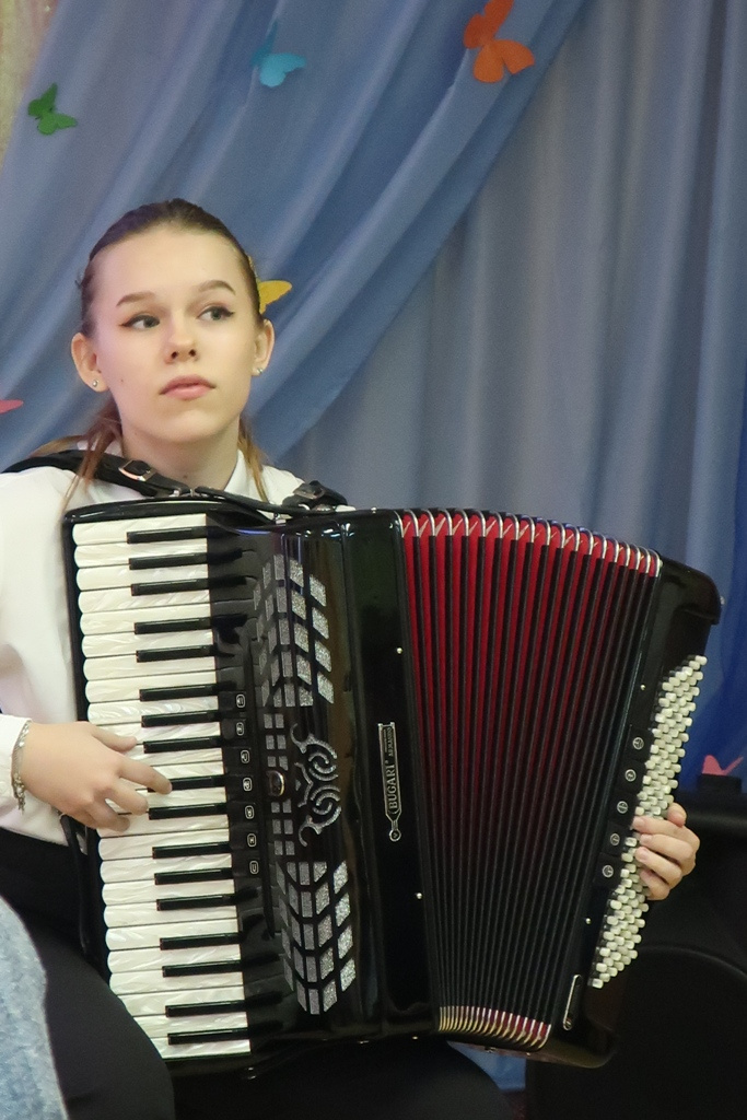 Блистательные выступления наших звёздочек – аккордеонистки Арины Криушовой (педагог Елена Подшивалова), баяниста Дмитрия Ергунова (педагог Елена Гуцул), учащегося Катав-Ивановского индустриального техникума, участника команды-победительницы «№1» межмуниципального фестиваля «Замечательный сосед. Битва сезонов» Руслана Христу – всем очень понравились. Ну, а молодым, в свою очередь, по душе пришлись сольные номера городской певицы Елены Лазаревой и идейное единение, частичкой которого они себя ощутили.
