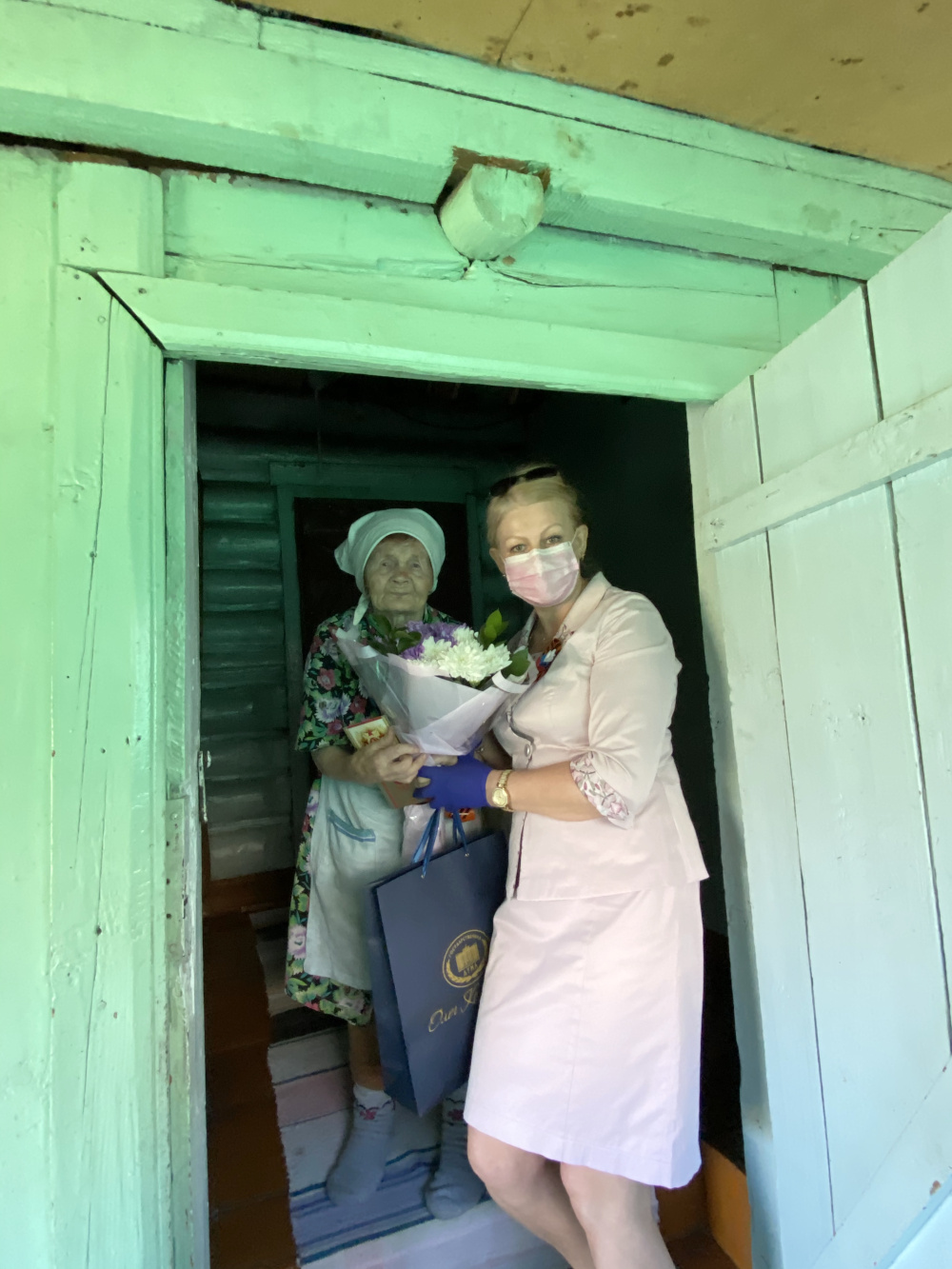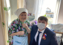 Анна Семёновна Вишнякова встретила нас на крылечке дома. Улыбчивая, открытая. С радостью приняла поздравления, отметив, что очень важно получить их день в день. Горожанам и участникам Великой Отечественной войны она передала большой привет, пожелания здоровья и мира.