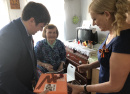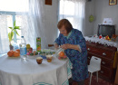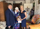 Нина Ивановна Гасова с сыном Сергеем Дмитриевичем встречали нас на улице, любезно проводили в чистенький, уютный домик. У Нины Ивановны, как всегда, на столе – сладкое угощенье! «Она с утра вас ждёт! - говорит Гасов-сын. - Всё смотрит в окошко и спрашивает: «До приезда гостей ещё долго?» Дома у Гасовой – всё белоснежное: накидки на подушках, шторы, скатерть, стены. На подоконниках и тумбочках – цветы, вручную изготовленные открытки с Днём Победы, она собирает их все года, поэтому на комоде – целая коллекция. Хозяйка отлично выглядит, с причёской. Очень гостеприимная. «Давайте выпьем шампанского!» - предложила она. «На Губернаторском приёме вместе со всеми», - предложили мы. «Ну, тогда я вам «на дорожку» пакетики соберу», - не отступала Нина Ивановна. Это получилось у неё быстро и по-матерински тепло. «Так всю жизнь в торговле работала, профессиональную сноровку у неё не отнять! - шутит сын Сергей Дмитриевич. – Маме 93 года, а она у нас – молодец. Обслуживает себя сама. Зимы переносит нормально. Мы живём рядом, помогаем». Проводить нас Нина Ивановна вышла на крыльцо и обещала при хорошей погоде приехать на приём Губернатора во Дворец культуры района.