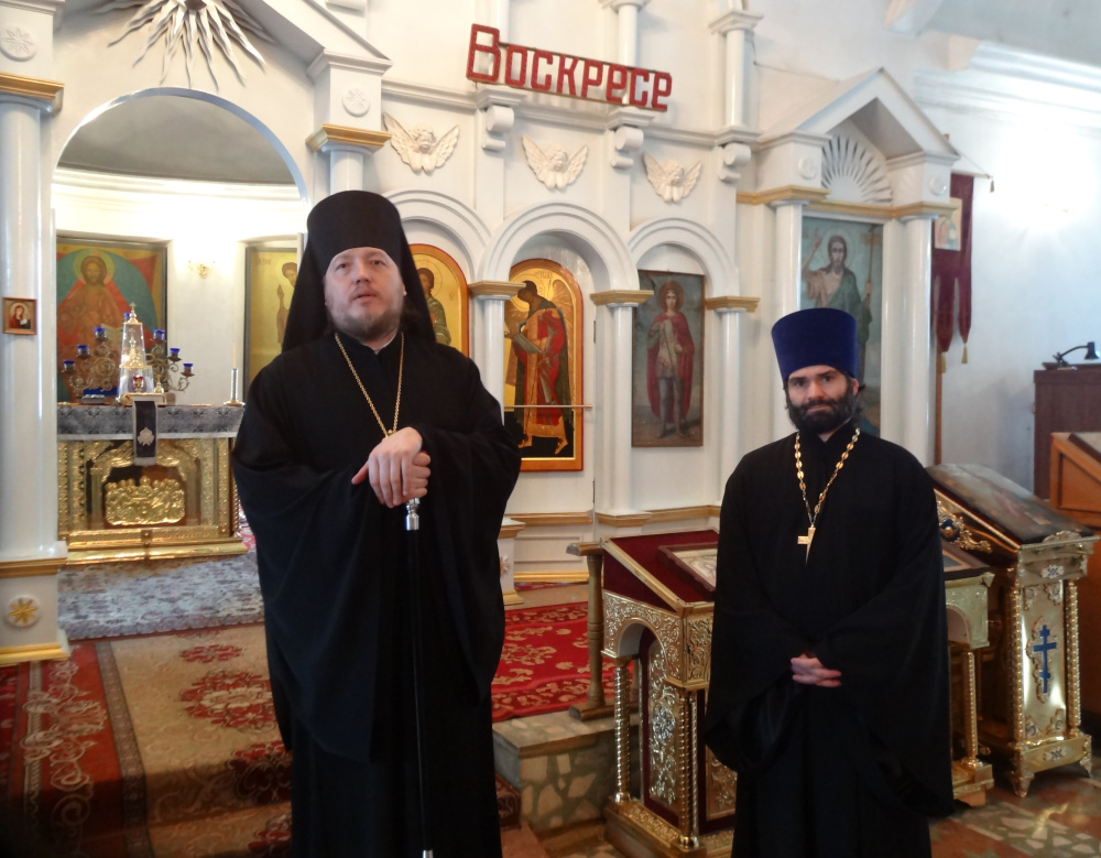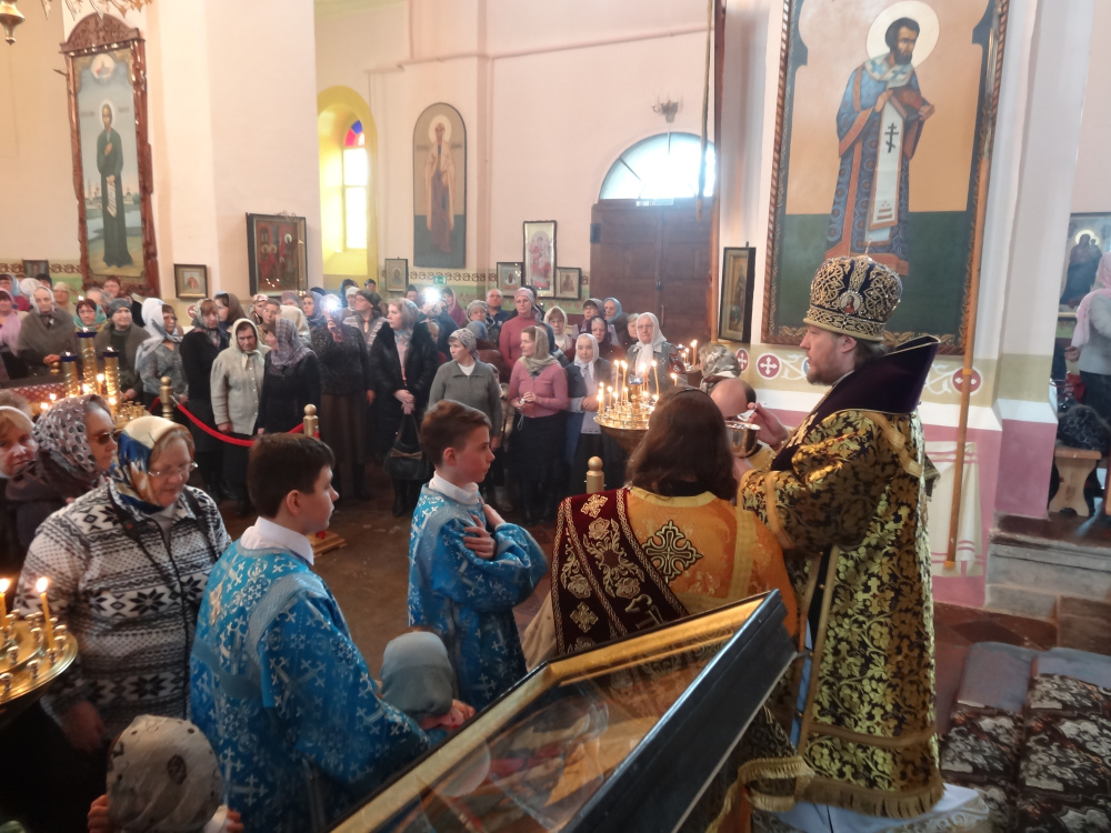 На крыльце храма владыку приветствовали взрослые казаки с казачатами, а прихожане, образовав живой коридор, поздравляли всех прибывших с праздником. Божественная литургия длилась полтора часа. Под сводами собора величаво и чисто звучали песнопения, а также проповедь в честь Преподобного Иоанна Лествичника, который почитается как великий подвижник и автор духовного творения «Лествица». В 16 лет он пришел в Синайский монастырь, где долгое время подвизался в послушании духовному отцу, по кончине которого избрал отшельническую жизнь, удалившись в пустынное место на 40 лет. В 75 лет был избран игуменом Синайской обители, где написал руководство для восхождения к духовному совершенству. Примеры из «Лествицы» служат образцом святой ревности о спасении, которая необходима каждому желающему жить благочестиво. К чему и призвал собравшихся владыка Викентий.