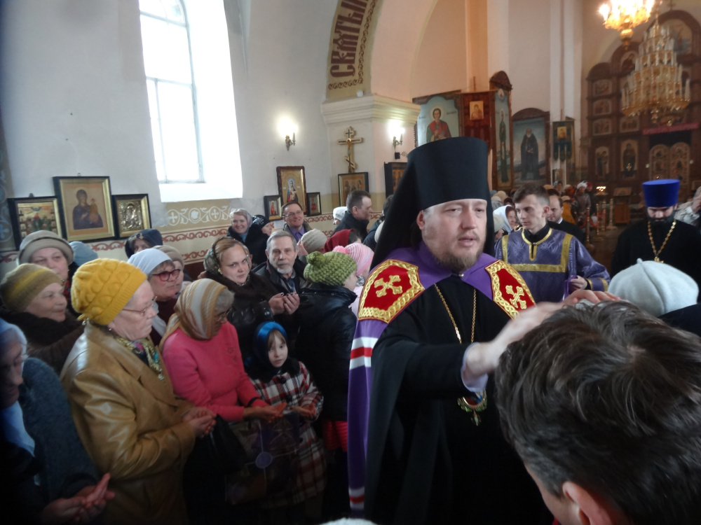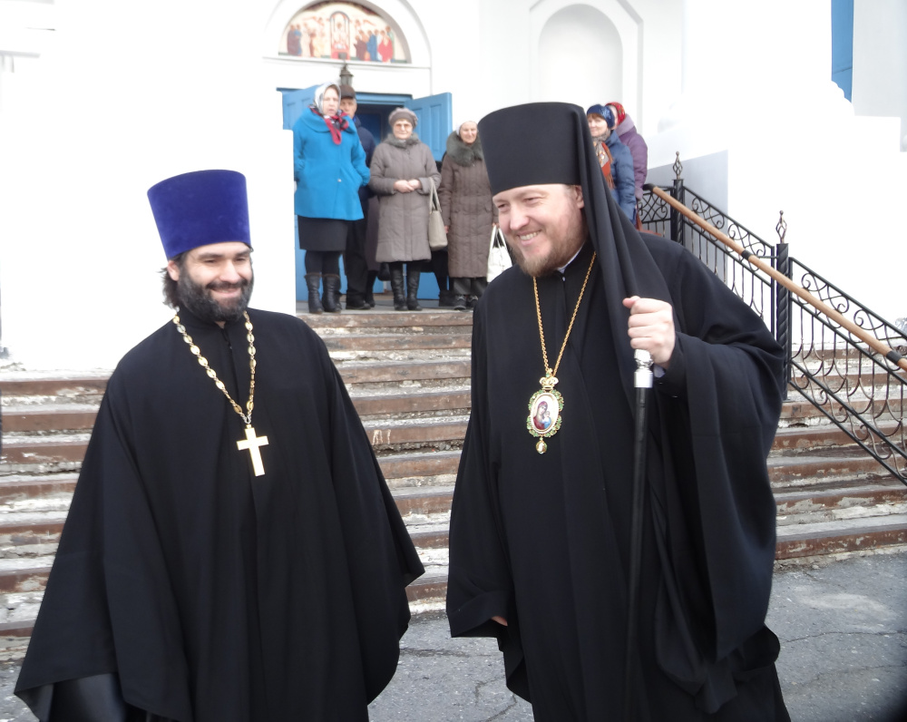 Воскресная служба в Юрюзанском Христово-Рождественском храме в день памяти преподобного Иоанна Лествичника началась в 9.00. Хотя по календарю весна, зима никак не хочет уступать свои права тёплому сезону, по утрам морозно, ветряно, сыплет снег. Дороги в связи с непогодой всегда сложные, прихожане волновались, как по перегруженной М5 доберётся епископ. Ко всеобщей радости он прибыл вовремя, в сопровождении молодых, мобильных руководителей отделов епархии. Гостей встречали благочинный Катав-Ивановского округа протоиерей Александр Симора, настоятель храма протоиерей Пётр Назаров, первый заместитель главы Катав-Ивановского муниципального района Алексей Захаров, председатель Собрания депутатов Катав-Ивановского муниципального района Николай Рудаков, исполняющий обязанности главы Катав-Ивановска Иван Норко, глава Юрюзани Сергей Замятин, глава Трёхгорного Евгений Сычёв, глава Тюлюкского сельского поселения Игорь Мозговой. Они преподнесли епископу букет из белых роз.