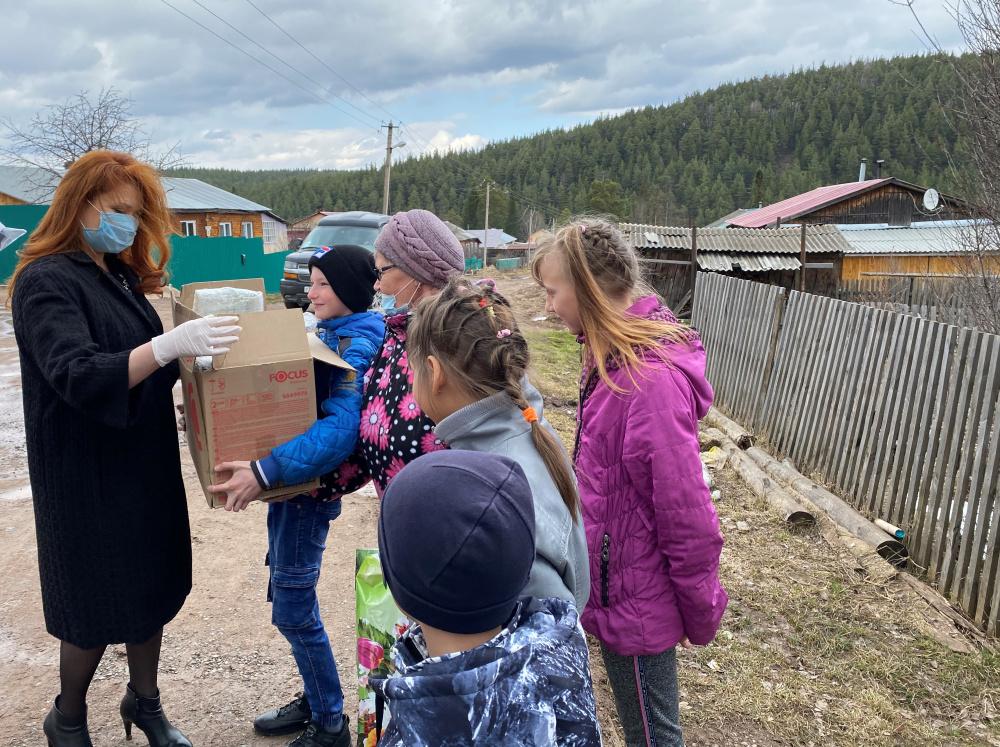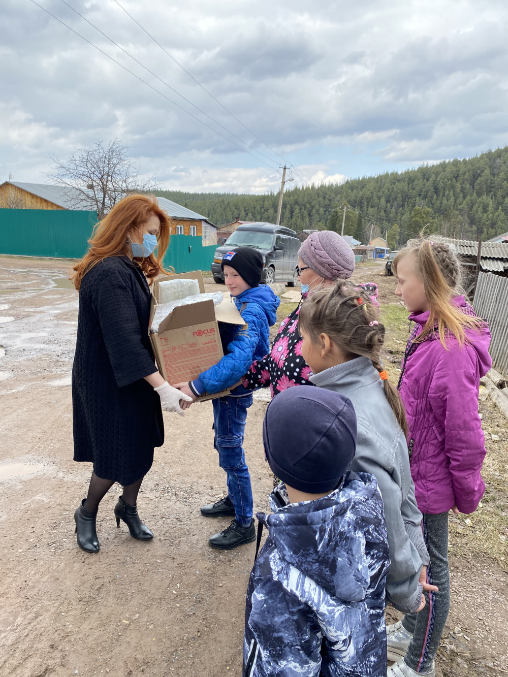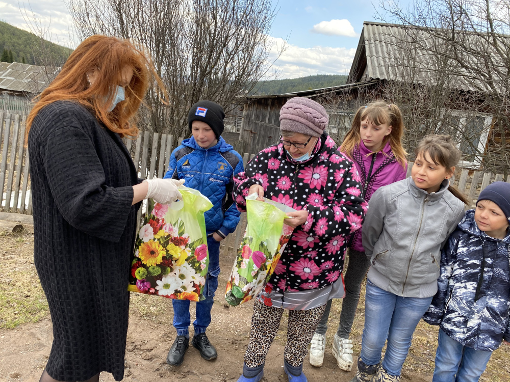 Также депутат передала продовольственный набор ещё одной семье. Хозяйка тут очень скромная, благодарная. Пакет ей доставили волонтёры из движения «Клевер» - Данил Анисимов, учащийся Катав-Ивановского индустриального техникума и Константин Клёпов, сотрудник Комплексного центра социального обслуживания населения.