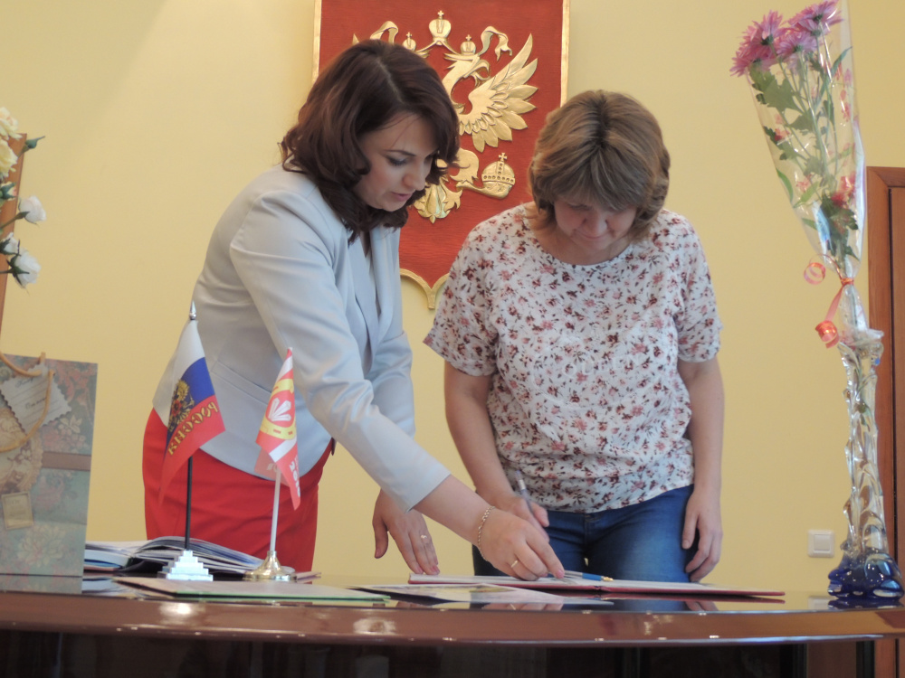 Вместе с документами и теплыми пожеланиями, маме вручена характеристика по имени дочки и небольшие подарки.