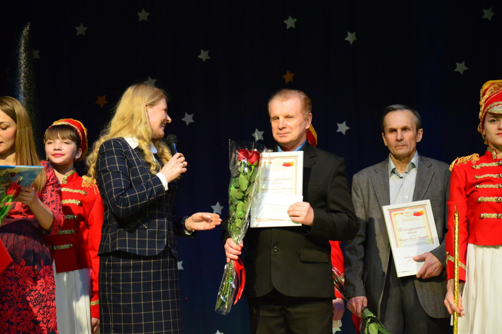 Высоких наград от парламентария страны Олега Колесникова удостоились долгожители сцены: Анатолий Васильевич Завардин,аккомпаниатор народного коллектива самодеятельного художественного творчества Челябинской области хора "Русская песня", Михаил Васильевич Малюгин, руководитель вокальной эстрадной студии "Вызов». Анатолий Васильевич верен своей профессии, ей он посвятил более 30 лет. Его знает вся Юрюзань. Ни один масштабный праздник не обходится без его участия. Скромный, интеллигентный, красивый. Он с удовольствием отвечал на мои вопросы блиц-интервью на сцене.