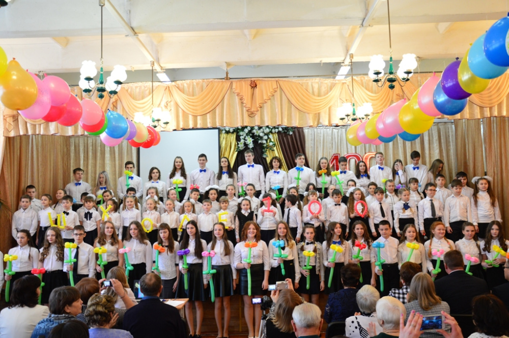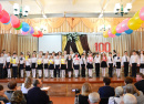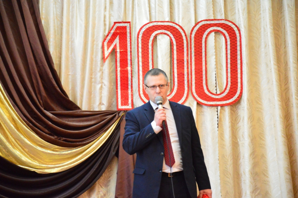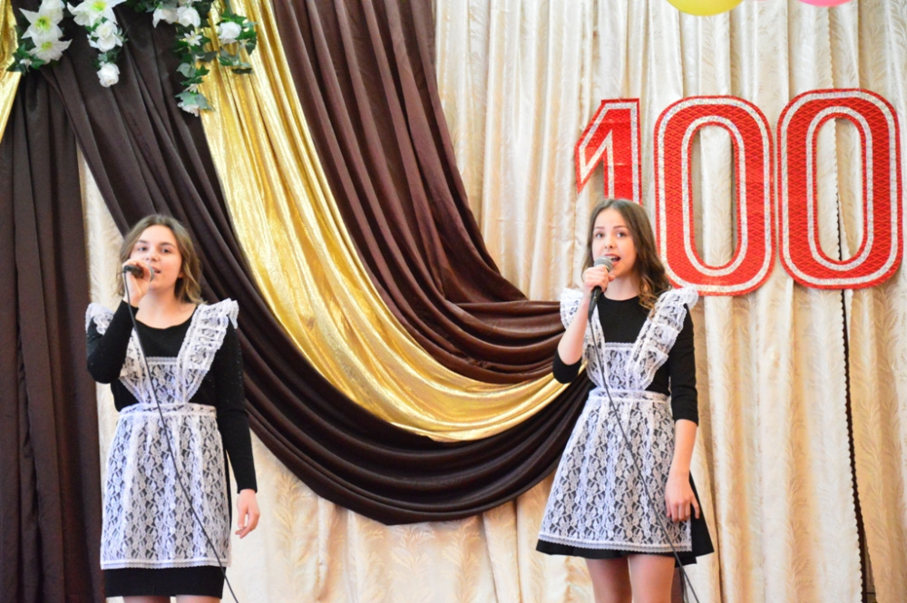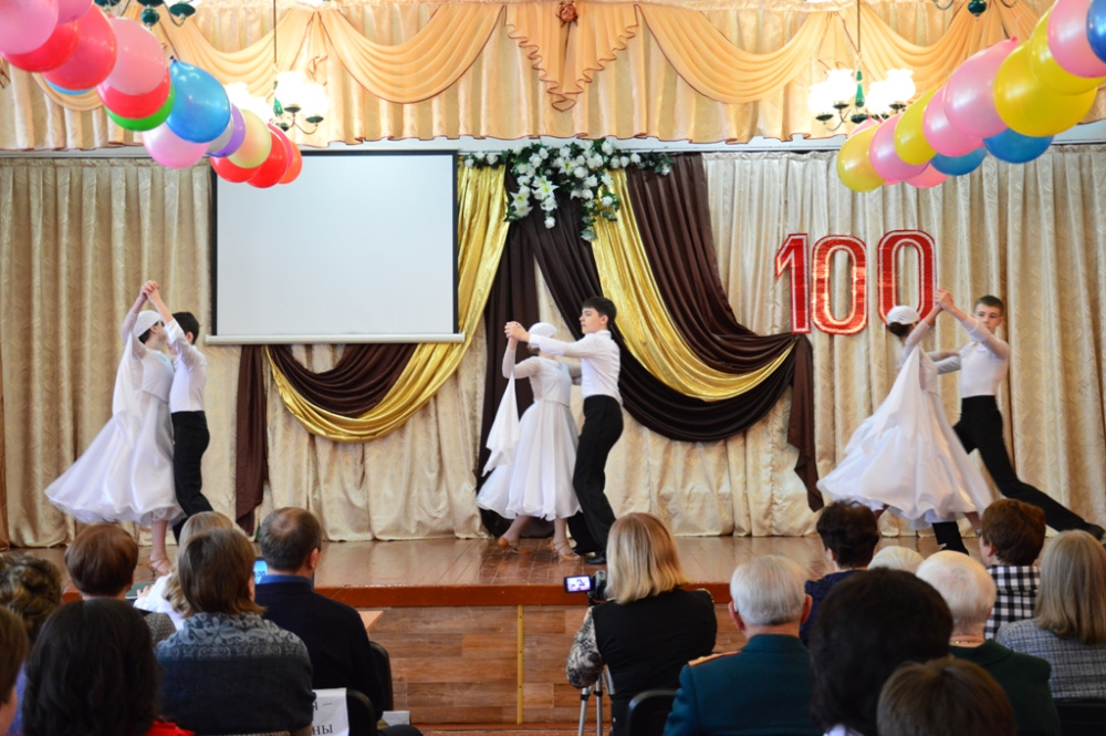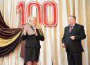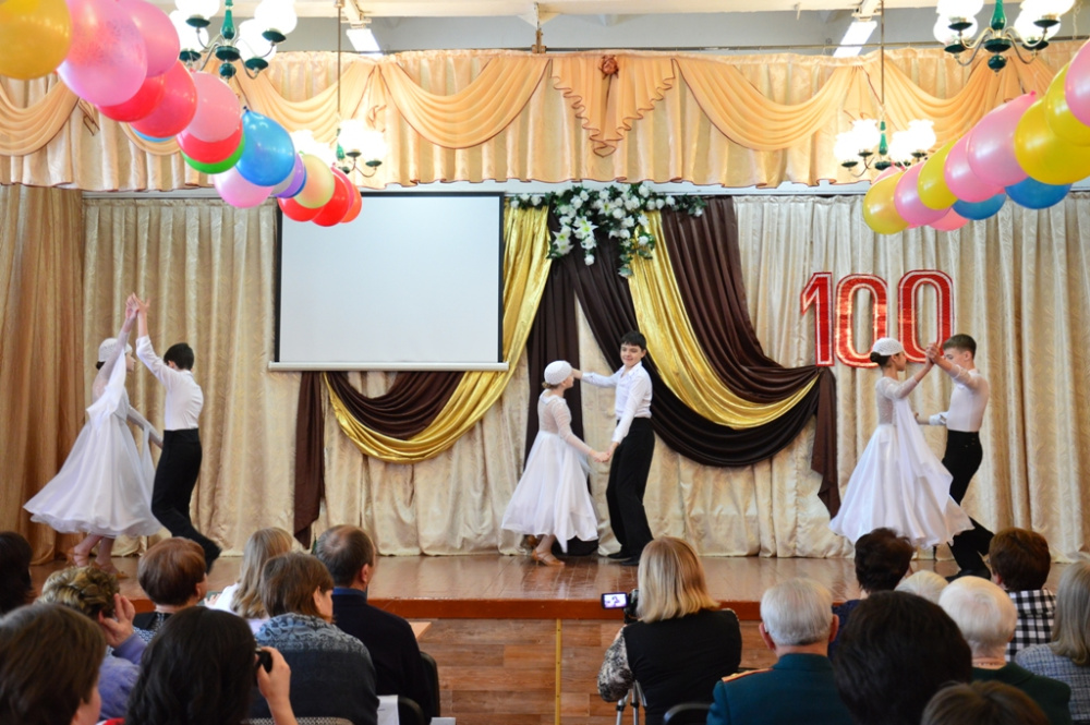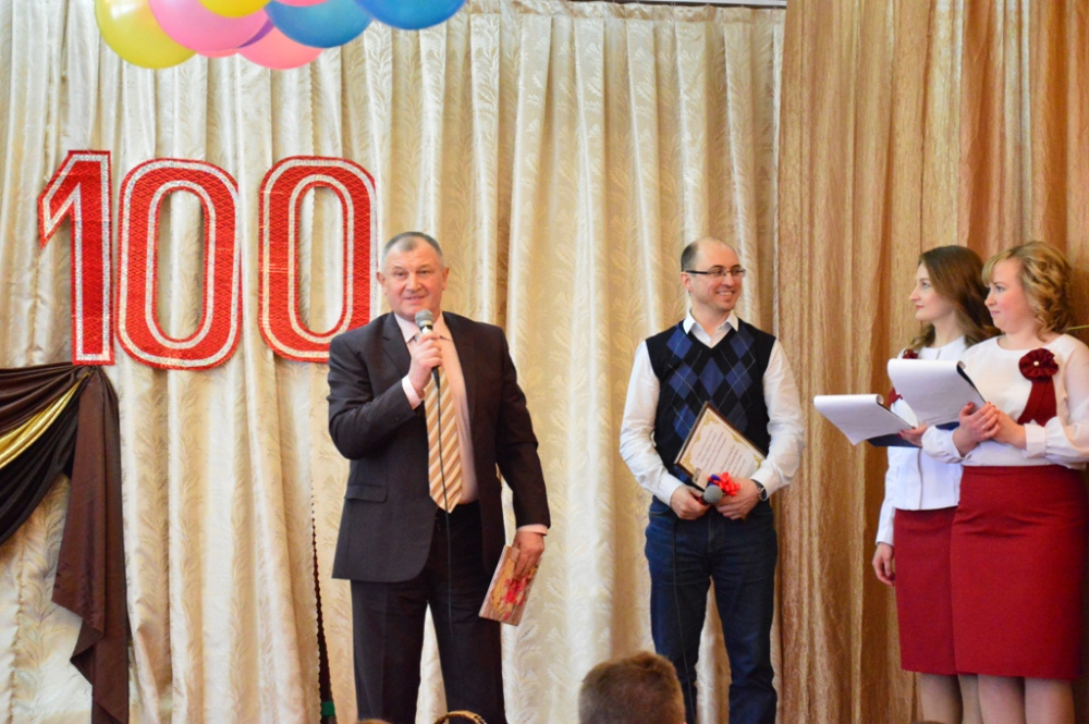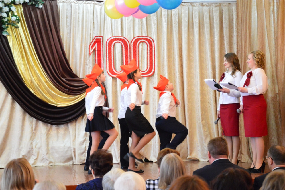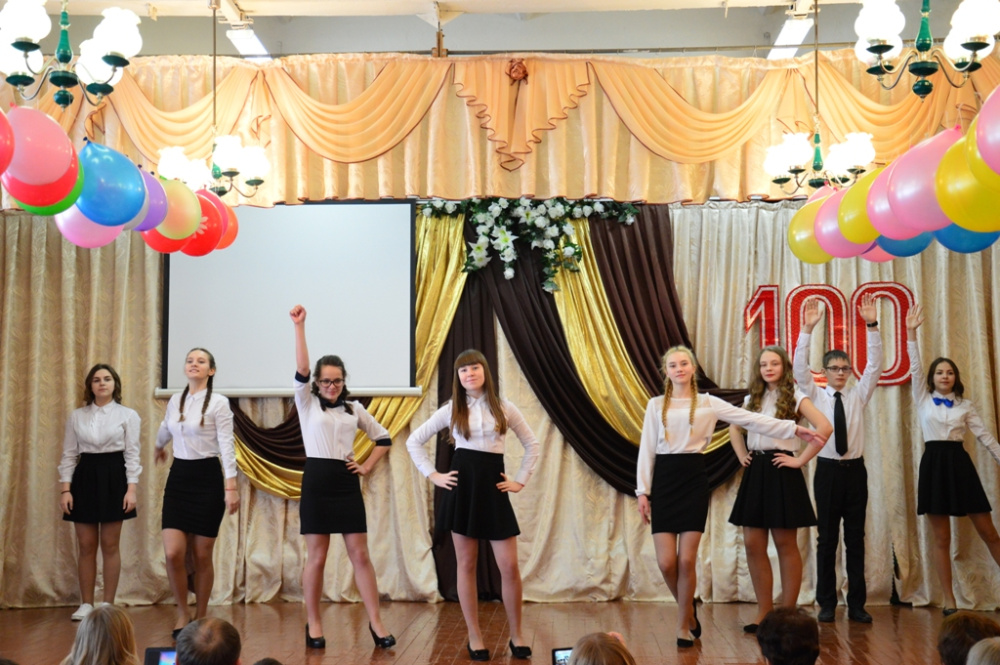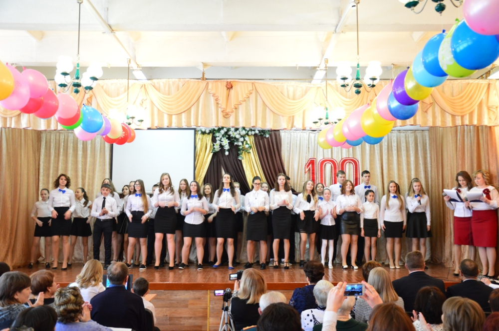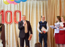 Спасибо, что подарили много позитива всем, кто разделил в этот день радость события. Мне остаётся лишь добавить, что по поручению главы муниципалитета Евгения Юрьевича Киршина ценный подарок – сертификат на 100 тысяч рублей – коллективу школы преподнёс заместитель главы района Антон Евгеньевич Буренков, он также вручил Почётную грамоту Светлане Гильмановой, заместителю директора по учебно-воспитательной работе, благодарность – Эльвире Путиловой, учителю начальных классов. Заместитель главы района Павел Решетов приветствовал коллектив школы-юбиляра и вручил Почётную грамоту от Собрания депутатов Зилире Жидковой, учителю начальных классов, благодарность – Татьяне Шабардиной, педагогу-библиотекарю, а также подарок от отдела молодёжи муниципалитета – директору Александру Базанову. Клавдия Киселёва, начальник управления образования, подарила школе сертификат на 25 тысяч рублей, наградила по результатам работы педагогов и дала наказ: «В связи со 100-летним юбилеем ждём от выпускников Первой юрюзанской 100 баллов на сдаче ЕГЭ!» От Совета депутатов третьего созыва Катав-Ивановска педколлектив получил ценный подарок. Исполняющий обязанности главы Катав-Ивановска Иван Норко подарил сертификат для приобретения техники, кстати, Иван Иванович прочитал для собравшихся стихи, чем особо растрогал зал до слёз, особенно ветеранов педагогического труда, которые отметили, что сейчас чиновник, говорящий грамотно, - большая редкость. Свои подарки школе-юбиляру подготовила и местная юрюзанская власть. Особенно запомнилось выступление гостя, выпускника 1947 года, полковника запаса, который приехал в Юрюзань из белорусского Слуцка, Юрия Ивановича Махетова. Его искромётная речь очень понравилась молодёжи, которая внимала каждому его слову и дружно аплодировала. Алевтина Павловна Нестерова (Лобзанова), выпуску её класса в этом году исполняется 60 лет, также поделилась с собравшимися своими воспоминаниями и подарила школьному музею дорогой для неё экспонат: её отец был первым фотографом Юрюзани, и теперь экспозиция пополнилась его фотоаппаратом. Оригинальными в своих поздравлениях были и меценаты школы – депутаты районного Собрания депутатов Герман Шубин и Александр Шекунов. Ценную книгу для патриотического воспитания школьников преподнёс председатель городского совета ветеранов Юрюзани Евгений Соловьёв. Местное отделение Партии «Единая Россия» порадовало школу сертификатом на 10 тысяч рублей. Памятный адрес прислал и депутат Госдумы России Владимир Жириновский! Поздравления текли настоящей рекой, в берега которой органично вплелись выступления сегодняшних талантливых учеников и педагогов. Кульминационным моментом стало исполнение гимна школы учителями и директором. Специально к юбилею педагогам сшили единую фирменную форму: белые блузы, дополненные аксессуаром-розой, юбки бордового цвета, - такие деловые костюмы смотрелись на женщинах (их большинство! – прим.авт.) здорово! И действительно, руководитель школы Александр Базанов выглядел в момент торжества самым счастливым – в окружении умных, достойных, стильных, творческих, интеллигентных коллег! Все старались запечатлеть этот сюжет на камеры фотоаппаратов, мобильных телефонов. Но Первая школа не была бы первой, если бы не умела удивлять. Сюрприз удался – и блестящий фон