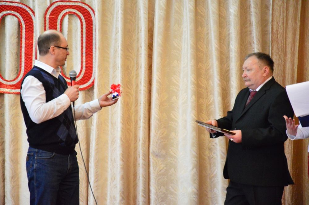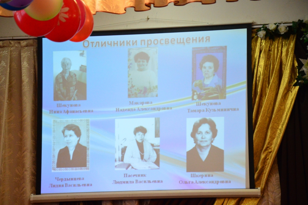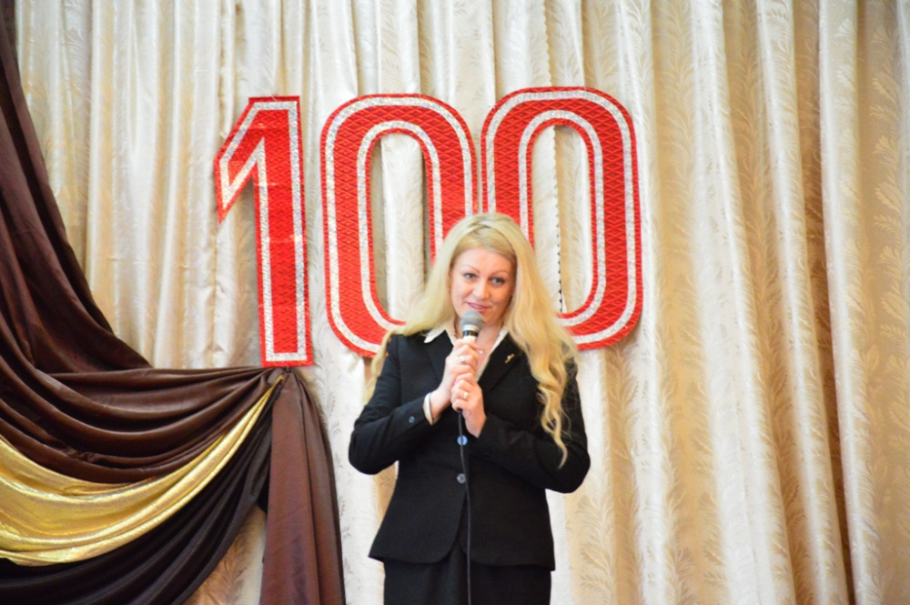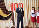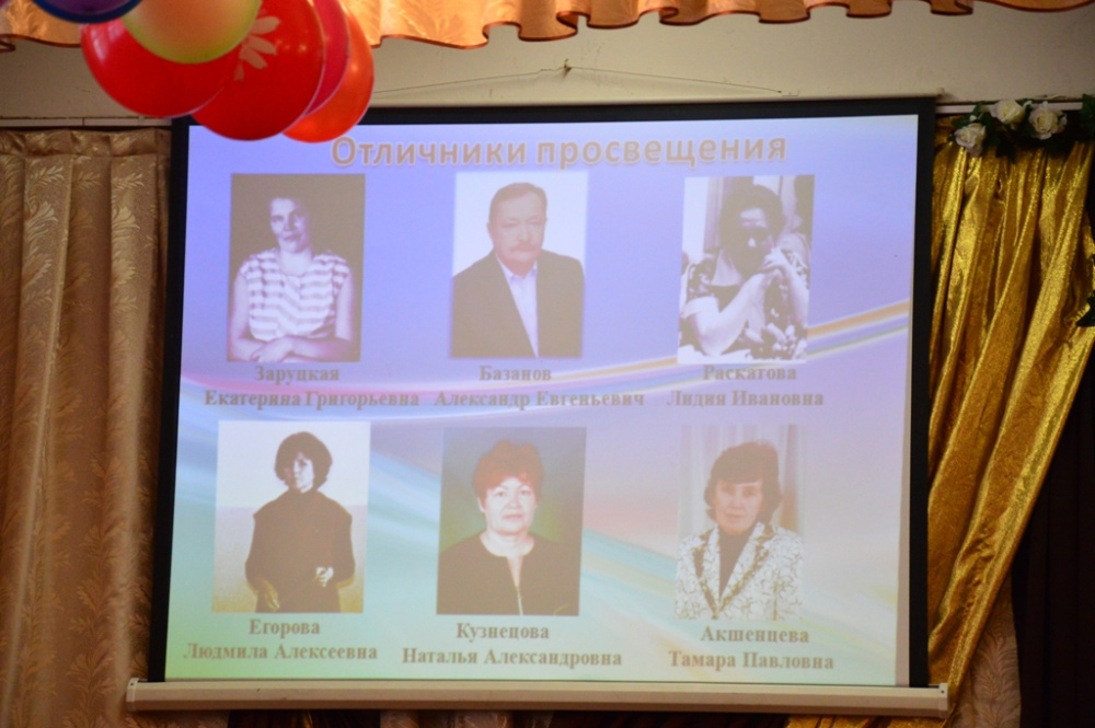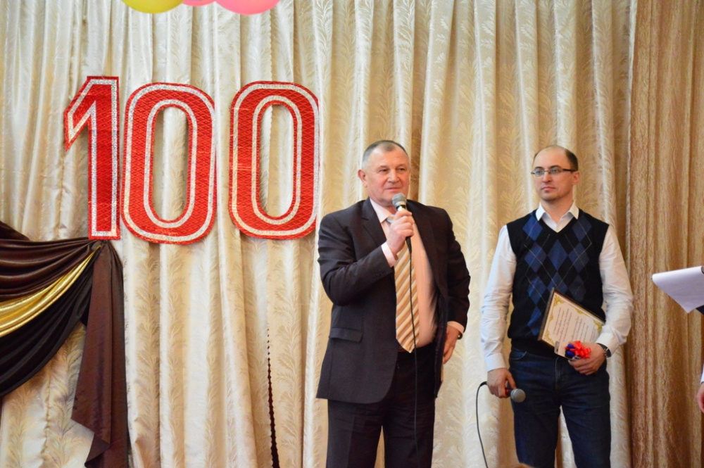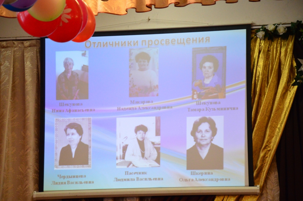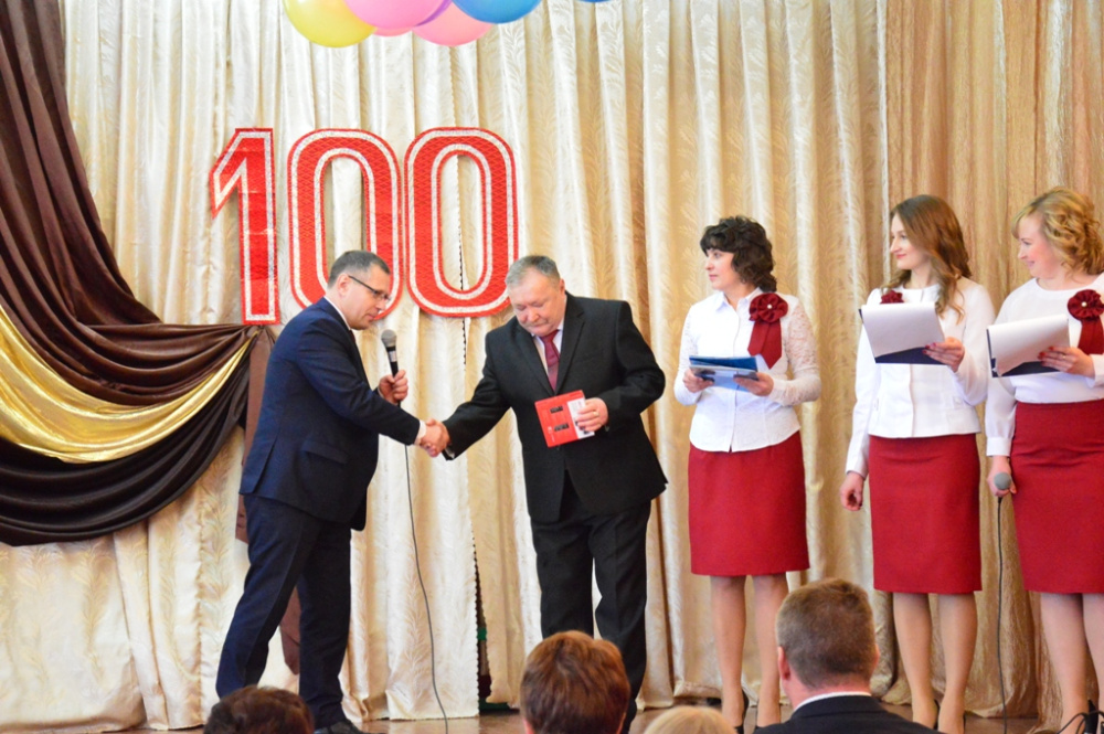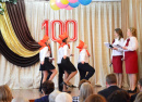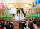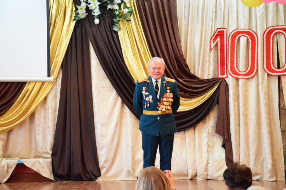 Спасибо, что подарили много позитива всем, кто разделил в этот день радость события. Мне остаётся лишь добавить, что по поручению главы муниципалитета Евгения Юрьевича Киршина ценный подарок – сертификат на 100 тысяч рублей – коллективу школы преподнёс заместитель главы района Антон Евгеньевич Буренков, он также вручил Почётную грамоту Светлане Гильмановой, заместителю директора по учебно-воспитательной работе, благодарность – Эльвире Путиловой, учителю начальных классов. Заместитель главы района Павел Решетов приветствовал коллектив школы-юбиляра и вручил Почётную грамоту от Собрания депутатов Зилире Жидковой, учителю начальных классов, благодарность – Татьяне Шабардиной, педагогу-библиотекарю, а также подарок от отдела молодёжи муниципалитета – директору Александру Базанову. Клавдия Киселёва, начальник управления образования, подарила школе сертификат на 25 тысяч рублей, наградила по результатам работы педагогов и дала наказ: «В связи со 100-летним юбилеем ждём от выпускников Первой юрюзанской 100 баллов на сдаче ЕГЭ!» От Совета депутатов третьего созыва Катав-Ивановска педколлектив получил ценный подарок. Исполняющий обязанности главы Катав-Ивановска Иван Норко подарил сертификат для приобретения техники, кстати, Иван Иванович прочитал для собравшихся стихи, чем особо растрогал зал до слёз, особенно ветеранов педагогического труда, которые отметили, что сейчас чиновник, говорящий грамотно, - большая редкость. Свои подарки школе-юбиляру подготовила и местная юрюзанская власть. Особенно запомнилось выступление гостя, выпускника 1947 года, полковника запаса, который приехал в Юрюзань из белорусского Слуцка, Юрия Ивановича Махетова. Его искромётная речь очень понравилась молодёжи, которая внимала каждому его слову и дружно аплодировала. Алевтина Павловна Нестерова (Лобзанова), выпуску её класса в этом году исполняется 60 лет, также поделилась с собравшимися своими воспоминаниями и подарила школьному музею дорогой для неё экспонат: её отец был первым фотографом Юрюзани, и теперь экспозиция пополнилась его фотоаппаратом. Оригинальными в своих поздравлениях были и меценаты школы – депутаты районного Собрания депутатов Герман Шубин и Александр Шекунов. Ценную книгу для патриотического воспитания школьников преподнёс председатель городского совета ветеранов Юрюзани Евгений Соловьёв. Местное отделение Партии «Единая Россия» порадовало школу сертификатом на 10 тысяч рублей. Памятный адрес прислал и депутат Госдумы России Владимир Жириновский! Поздравления текли настоящей рекой, в берега которой органично вплелись выступления сегодняшних талантливых учеников и педагогов. Кульминационным моментом стало исполнение гимна школы учителями и директором. Специально к юбилею педагогам сшили единую фирменную форму: белые блузы, дополненные аксессуаром-розой, юбки бордового цвета, - такие деловые костюмы смотрелись на женщинах (их большинство! – прим.авт.) здорово! И действительно, руководитель школы Александр Базанов выглядел в момент торжества самым счастливым – в окружении умных, достойных, стильных, творческих, интеллигентных коллег! Все старались запечатлеть этот сюжет на камеры фотоаппаратов, мобильных телефонов. Но Первая школа не была бы первой, если бы не умела удивлять. Сюрприз удался – и блестящий фон