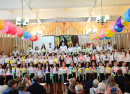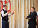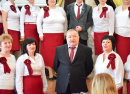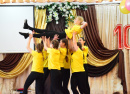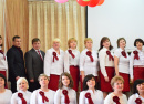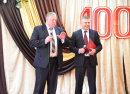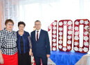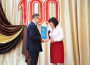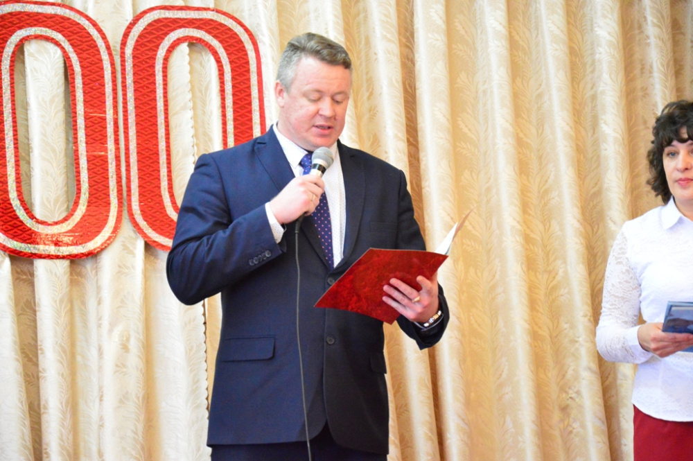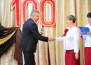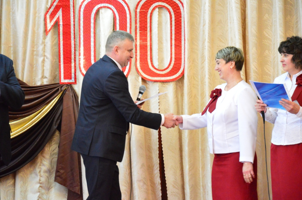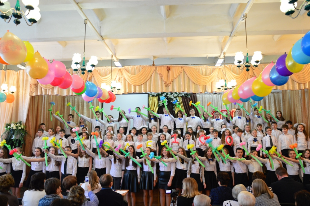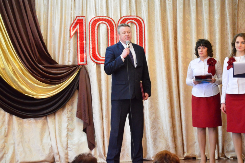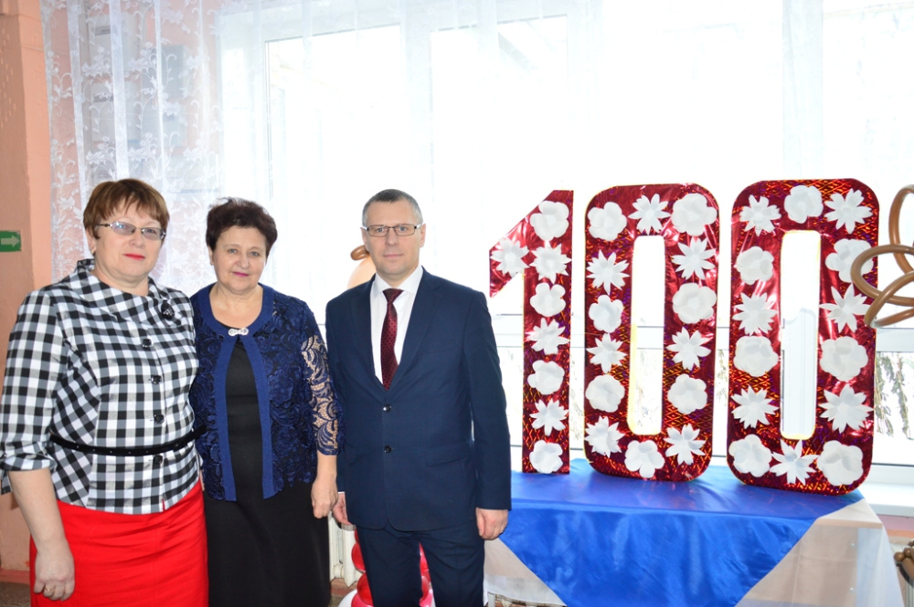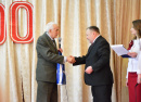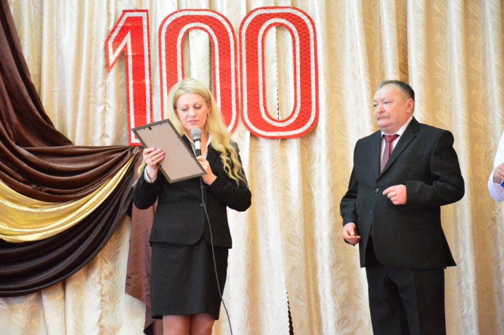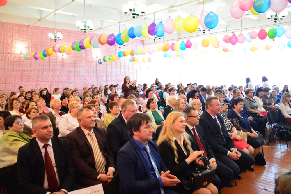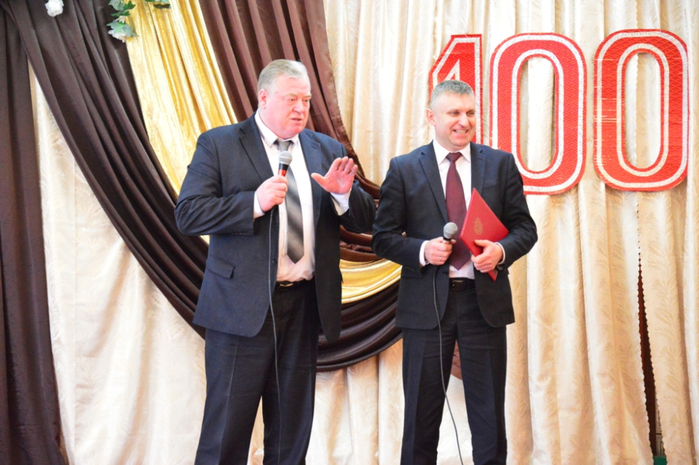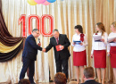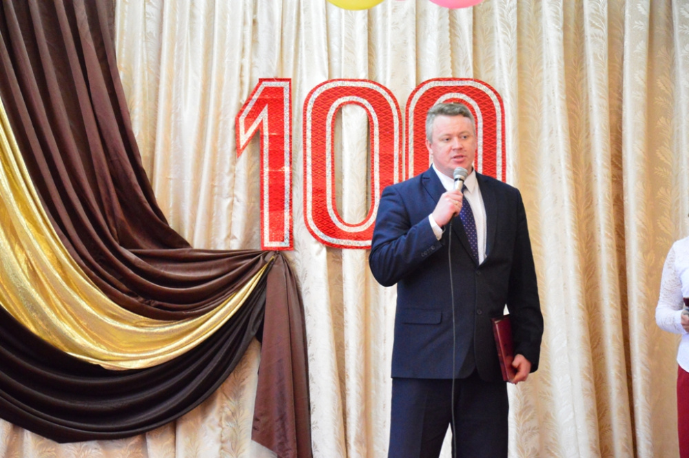 Спасибо, что подарили много позитива всем, кто разделил в этот день радость события. Мне остаётся лишь добавить, что по поручению главы муниципалитета Евгения Юрьевича Киршина ценный подарок – сертификат на 100 тысяч рублей – коллективу школы преподнёс заместитель главы района Антон Евгеньевич Буренков, он также вручил Почётную грамоту Светлане Гильмановой, заместителю директора по учебно-воспитательной работе, благодарность – Эльвире Путиловой, учителю начальных классов. Заместитель главы района Павел Решетов приветствовал коллектив школы-юбиляра и вручил Почётную грамоту от Собрания депутатов Зилире Жидковой, учителю начальных классов, благодарность – Татьяне Шабардиной, педагогу-библиотекарю, а также подарок от отдела молодёжи муниципалитета – директору Александру Базанову. Клавдия Киселёва, начальник управления образования, подарила школе сертификат на 25 тысяч рублей, наградила по результатам работы педагогов и дала наказ: «В связи со 100-летним юбилеем ждём от выпускников Первой юрюзанской 100 баллов на сдаче ЕГЭ!» От Совета депутатов третьего созыва Катав-Ивановска педколлектив получил ценный подарок. Исполняющий обязанности главы Катав-Ивановска Иван Норко подарил сертификат для приобретения техники, кстати, Иван Иванович прочитал для собравшихся стихи, чем особо растрогал зал до слёз, особенно ветеранов педагогического труда, которые отметили, что сейчас чиновник, говорящий грамотно, - большая редкость. Свои подарки школе-юбиляру подготовила и местная юрюзанская власть. Особенно запомнилось выступление гостя, выпускника 1947 года, полковника запаса, который приехал в Юрюзань из белорусского Слуцка, Юрия Ивановича Махетова. Его искромётная речь очень понравилась молодёжи, которая внимала каждому его слову и дружно аплодировала. Алевтина Павловна Нестерова (Лобзанова), выпуску её класса в этом году исполняется 60 лет, также поделилась с собравшимися своими воспоминаниями и подарила школьному музею дорогой для неё экспонат: её отец был первым фотографом Юрюзани, и теперь экспозиция пополнилась его фотоаппаратом. Оригинальными в своих поздравлениях были и меценаты школы – депутаты районного Собрания депутатов Герман Шубин и Александр Шекунов. Ценную книгу для патриотического воспитания школьников преподнёс председатель городского совета ветеранов Юрюзани Евгений Соловьёв. Местное отделение Партии «Единая Россия» порадовало школу сертификатом на 10 тысяч рублей. Памятный адрес прислал и депутат Госдумы России Владимир Жириновский! Поздравления текли настоящей рекой, в берега которой органично вплелись выступления сегодняшних талантливых учеников и педагогов. Кульминационным моментом стало исполнение гимна школы учителями и директором. Специально к юбилею педагогам сшили единую фирменную форму: белые блузы, дополненные аксессуаром-розой, юбки бордового цвета, - такие деловые костюмы смотрелись на женщинах (их большинство! – прим.авт.) здорово! И действительно, руководитель школы Александр Базанов выглядел в момент торжества самым счастливым – в окружении умных, достойных, стильных, творческих, интеллигентных коллег! Все старались запечатлеть этот сюжет на камеры фотоаппаратов, мобильных телефонов. Но Первая школа не была бы первой, если бы не умела удивлять. Сюрприз удался – и блестящий фон