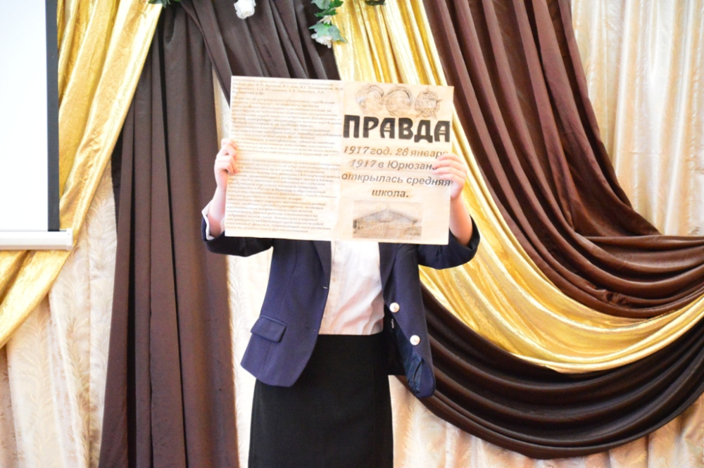 28 января 1917 года открылась Юрюзанская средняя школа №1. Ровно через 100 лет это старейшее образовательное учреждение Челябинской области, Катав-Ивановского района красиво, содержательно, ярко и значимо отметило свой юбилей - в новом веке, в новом столетии! Это торжество собрало много гостей, среди которых педагоги, ветераны труда, выпускники, родители, предприниматели, руководство муниципалитета. Нынешний коллектив учителей и школьников подготовил великолепный праздничный проект, который поразил своей глубиной, любовью к школе и знанием истории, где все события показаны через судьбы людей в документальном слайд-фильме и сценарии, а звуковое сопровождение изложено в форме оды – богатой смыслом, фактами, эмоциями. Летопись Юрюзанской первой гласит: «Аттестаты и путёвку в жизнь здесь получили 65 500 выпускников».