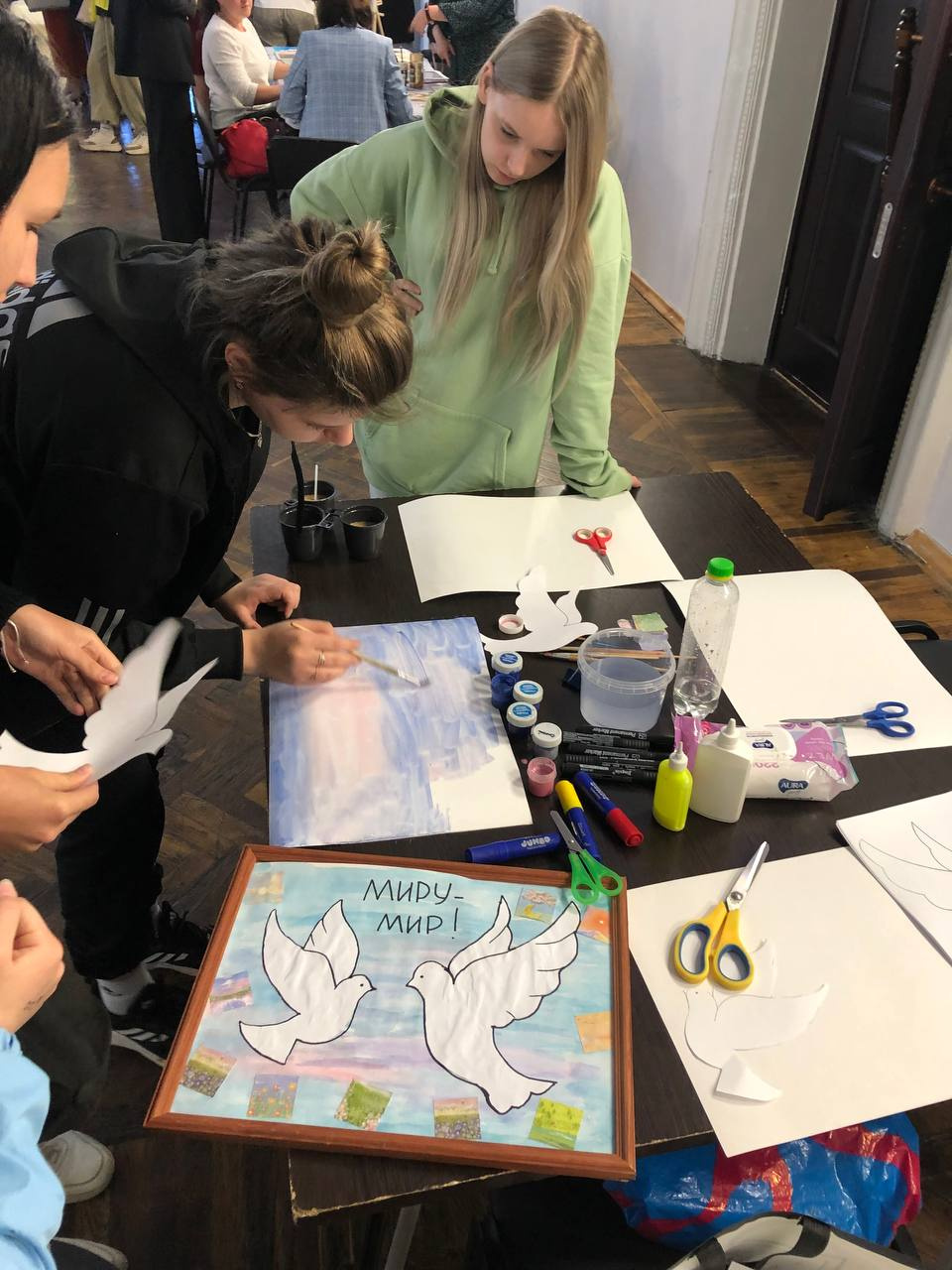 В работе сессии работали тематические площадки: изготовление блиндажных свечей; плетение маскировочных сетей. Мастер-классы по изготовлению кондитерских изделий и рисованию картин. Организована фотозона «Мамы и жены героев».
