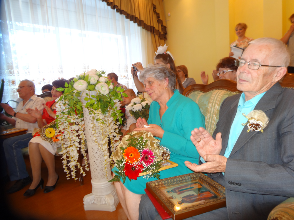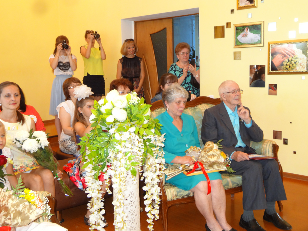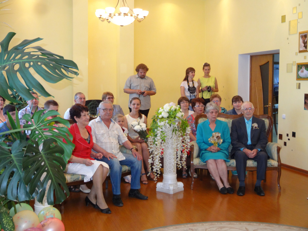 Мероприятие прошло по-домашнему душевно. Старейшей сотруднице отдела ЗАГС, опытному профессионалу Галине Борисовне Ивойловой досталось самое ответственное творческое задание - подготовить материал для «Визитной карточки» каждой семьи. И она отлично справилась, подготовив индивидуальные презентации, богатые интересными фактами из историй развития семей юбиляров, не упустив ни одной важной детали. В момент, когда Галина Борисовна рассказывала о Волоцковых и Воробьёвых, дети, внуки и близкие внимательно, с гордостью и любовью, слушали информацию, дружно аплодировали виновникам торжества. Семейный опыт этих пар заслуживает глубокого уважения, самой наивысшей оценки и, конечно же, того, чтобы им делиться с молодёжью.