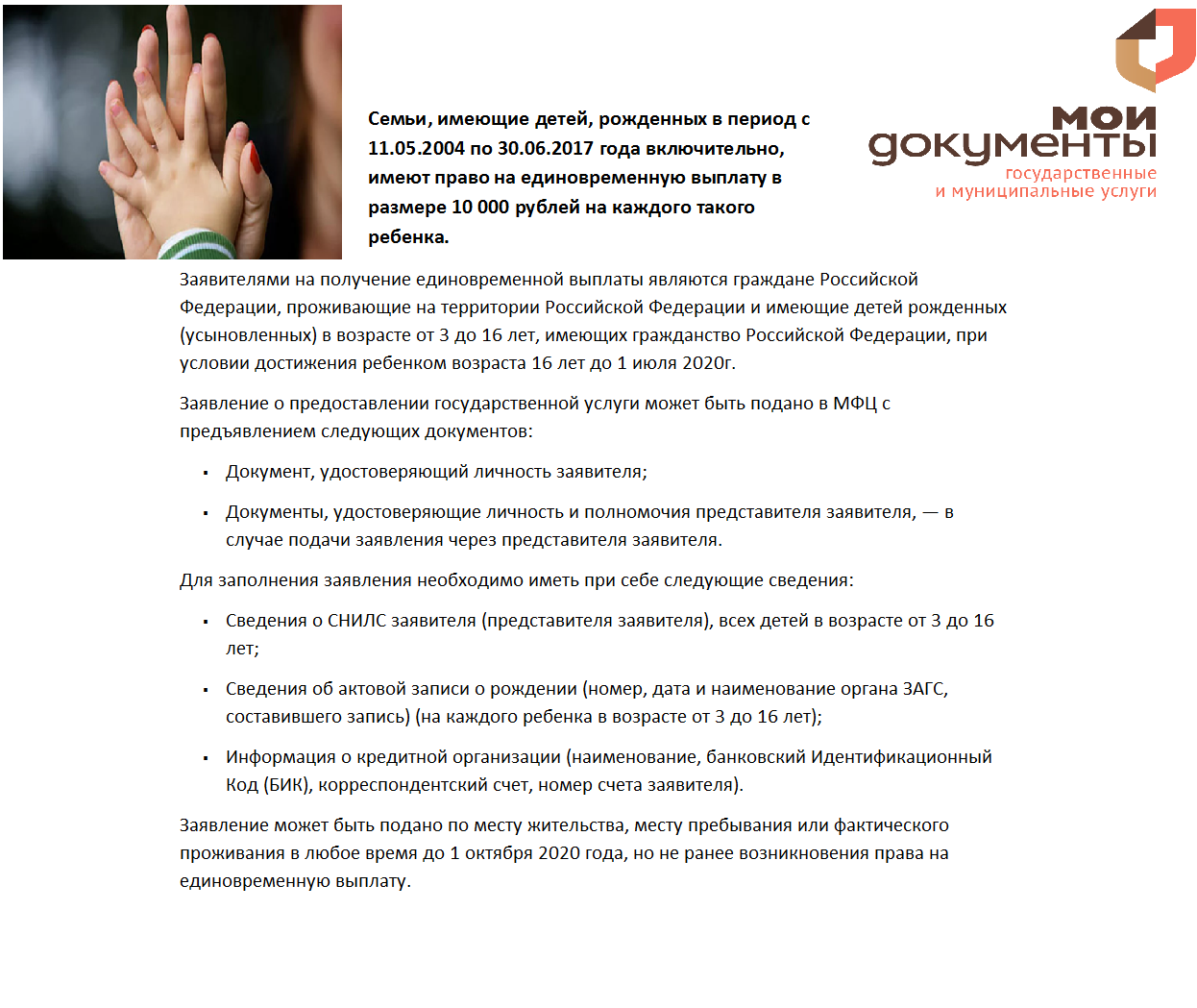 | с25.05.2020 в МФЦ можно подать заявление на единовр.выплату 10000 на каждого ребенка с 3 до 16 лет (174.93 КБ) | 174.93 КБ |
