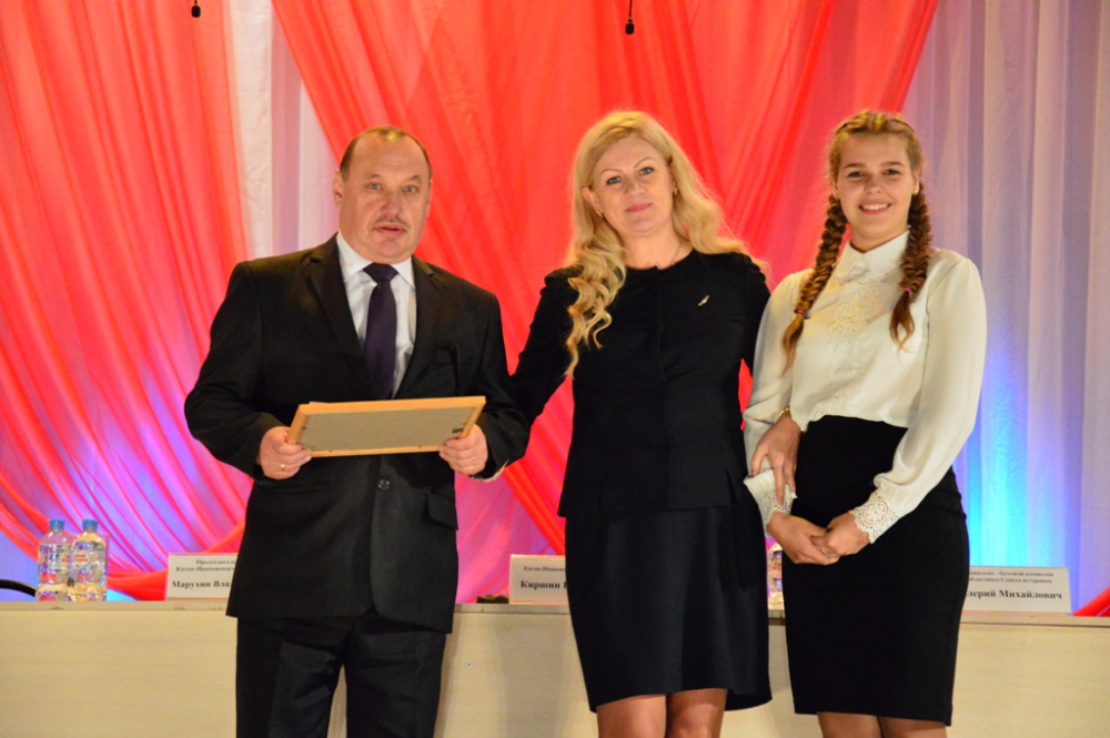 После всех официальных процедур перешли к награждениям. За активное участие в ветеранском движении и большой вклад в патриотическое воспитание подрастающего поколения Почетной грамотой главы Катав-Ивановского района награждены Валентина Необутова, председатель первичной ветеранской организации «Районная больница г. Катав-Ивановска», Валентина Бондарь, председатель первичной ветеранской организации «Катав-Ивановский индустриальный техникум», Виктор Лекомцев, председатель первичной ветеранской организации ООО «Катав-Ивановский литейный завод», благодарностью - Надежда Мельник, активист первичной ветеранской организации «Районная больница г. Катав-Ивановск», Галина Денисенко, активист первичной ветеранской организации «Комплексный центр социального обслуживания населения», Галина Химанова, председатель первичной ветеранской организации «Комплексный центр социального обслуживания населения».