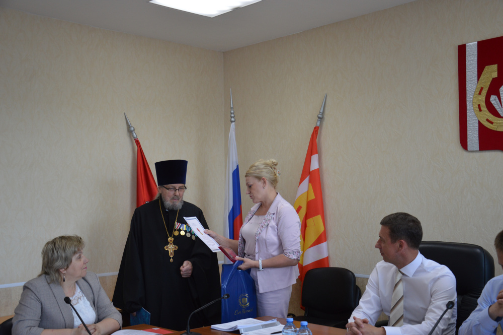 Началось заседание с чествования почетного жителя Юрюзани. В связи с 70-летним юбилеем и за большой вклад в развитие Юрюзани почётной грамотой Собрания депутатов был награждён протоиерей Пётр Назаров. Также Петру Назарову вручили медаль «Гордость Урала».