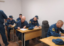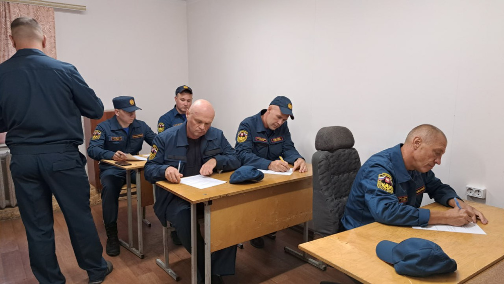 Сначала пожарные сели за парты - нужно было справиться с теорией. Этот этап включал в себя вопросы о тактической, технической, медицинской подготовке и охране труда.