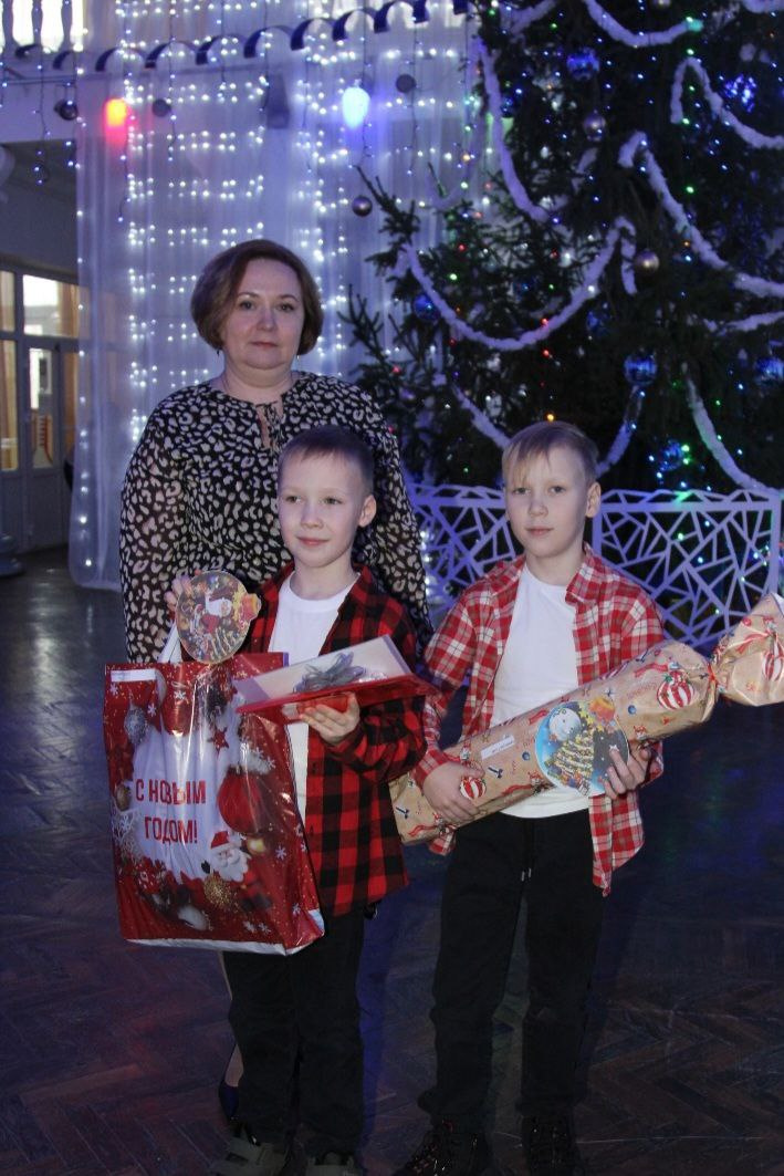 Владимир, Артём и Егор Наумовы приехали на праздник из Юрюзани вместе с мамой. О том, что загадали Деду Морозу, рассказывать нам не стали, ведь может не исполнится. Но Николай Шиманович исполнил желания ребят. Мальчишки с радостью заглянули в пакеты, а там — форма для занятий боксом, все братья увлекаются спортом, робот-трансформер и умные часы для самого старшего Егора. Радости ребят не было предела. Значит, чудеса случаются!
