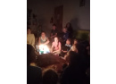 Воспитатели совместно с детьми зажгли свечи и исполняли песни из книги, которую сделали сами. Вся эта работа велась по проекту «Поклонимся Великим тем годам!».