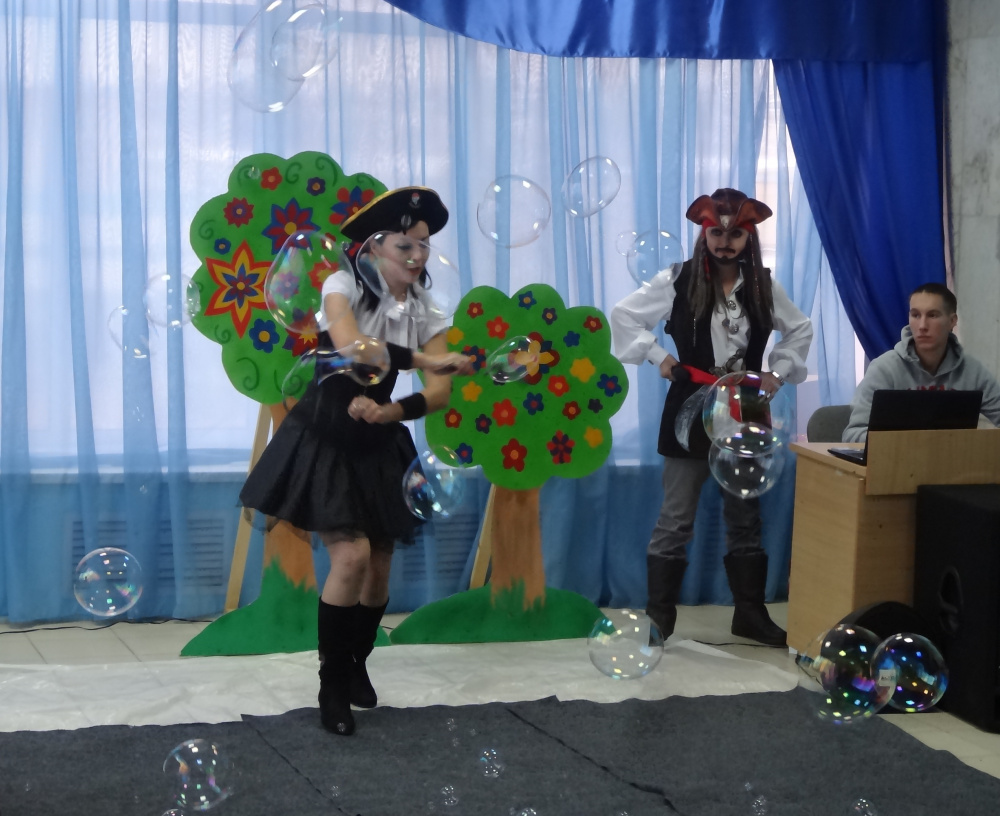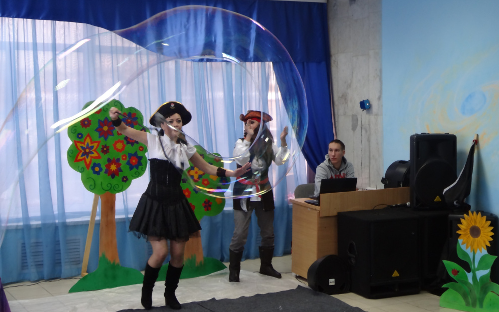 А затем детей ждал настоящий сюрприз от коллектива Дворца культуры ЮРЭС из Юрюзани. Когда Юлия Юрьевна Волкова обратилась к Марии Ким, руководителю проекта «Шоу мыльных пузырей», и предложила выступить на день рождения социально-реабилитационного центра, Мария Петровна, даже не глядя в свой рабочий график, ответила утвердительно: «Обязательно! И приедем мы с Джеком Воробьём!» Своё слово альтруистические артисты сдержали. Благотворительное шоу подарило детям столько положительных эмоций, столько впечатлений, ведь они сами стали участниками этого волшебного действа в океане радости, на корабле надежды.