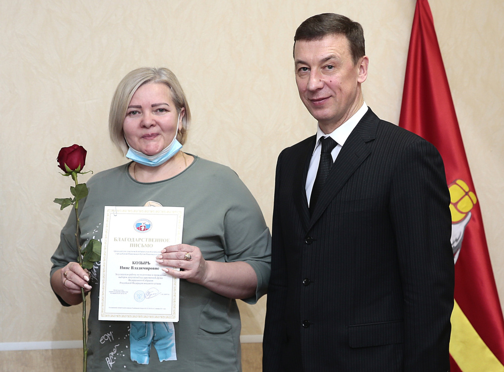 Николай Шиманович вручил также грамоты и благодарности избирательной комиссии Челябинской области за работу по подготовке и проведению выборов депутатов Госдумы председателям участковых комиссий Тамаре Курдаковой, Юлии Фадеевой, Наталье Кайсаровой, Светлане Акшенцевой, Нине Козырь, Наталье Спицыной.