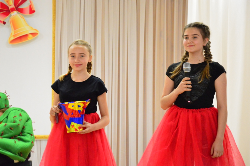На школьной сцене выступили творческие коллективы – детский образцовый ансамбль танца «Ангажемент», вокальная группа школы и аниматор Кактус. Он украл у школьников праздничные песни, а ребята своими добрыми словами и зажигательными танцами вернули их обратно.