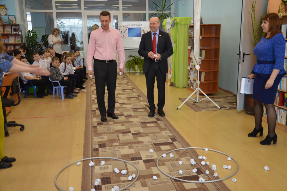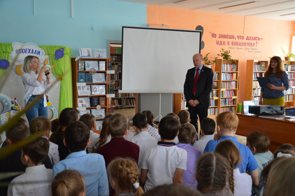 Колесников выразил надежду, что так и будет, как говорят дети. Он похвалил педагога Светлану Владимировну Чурину за то, что она уделяет много внимания подрастающему поколению, даёт школьникам уверенные знания и учит быть сплочённым и дружным коллективом. Также Олег Алексеевич отметил слаженную работу сотрудников детской районной библиотеки и высоко оценил интерактив, подготовленный ко Дню космонавтики заместителем директора по работе с детьми ЦРБ Татьяной Валерьевной Гнездиной и библиотекарем Ириной Александровной Смагиной. От депутата Законодательного Собрания Челябинской области Лены Рафиковны Колесниковой он вручил учреждению энциклопедию «Космос».