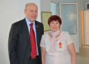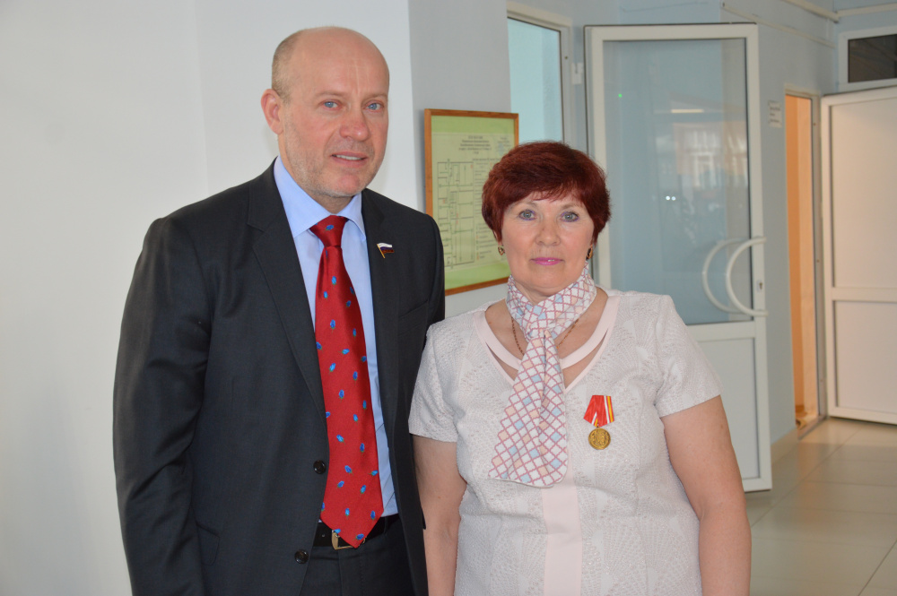 Затем Олег Алексеевич встретился с коллективом библиотеки, и в зале краеведения наградил почётным знаком общественного признания «Гордость Урала» ветеранов отрасли – Галину Борисовну Саутину, которая посвятила работе с читателями в Верх-Катавской библиотеке 48 лет, собрала уникальную коллекцию редких домашних предметов и организовала в учреждении ещё и шикарную экспозицию; Любовь Ивановну Шкерину, которая до сих пор трудится в Орловской библиотеке, стаж Любови Ивановны на десять лет меньше, чем у Галины Борисовны.