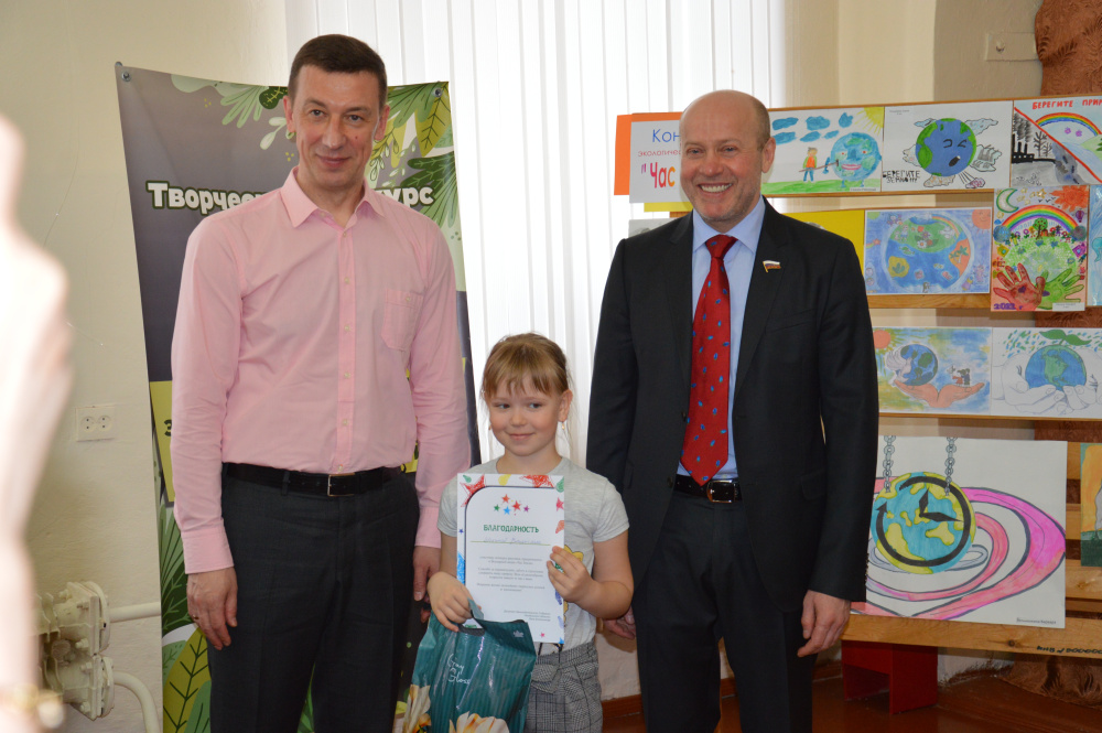 Далее парламентарий Колесников открыл выставку межмуниципального конкурса «Час Земли», провёл церемонию награждения юных художников, вручив благодарности и подарки не только победителям, но и всем участникам экологического действа. Мероприятие доставило много радости всем, кто находился в экспозиционном зале. Во-первых, директор музея Зинаида Фёдоровна Слепова подготовила содержательную викторину для собравшихся на экологическую тему, диалог на вопросы-ответы вызвал живой интерес у детей. Во-вторых, все могли сделать фото на фоне своих рисунков. И в-третьих, быть на вернисаже вместе с папами и мамами, - это здорово – видно, как взрослые гордятся детьми, помогают им воплощать их мечты и, конечно же, погружаться в жизнь через творчество.