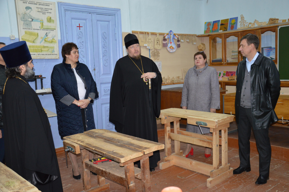 На прошлой неделе глава Катав-Ивановского района Николай Шиманович и Епископ Златоустовский и Саткинский Викентий побывали в учреждении. Епископ Викентий благословил преподавателей на работу на новом оборудовании. А они в свою очередь передали подарки от ребят — поделку из дерева, вязанную игрушку и горшочек с цветами из бисера и атласных лент.