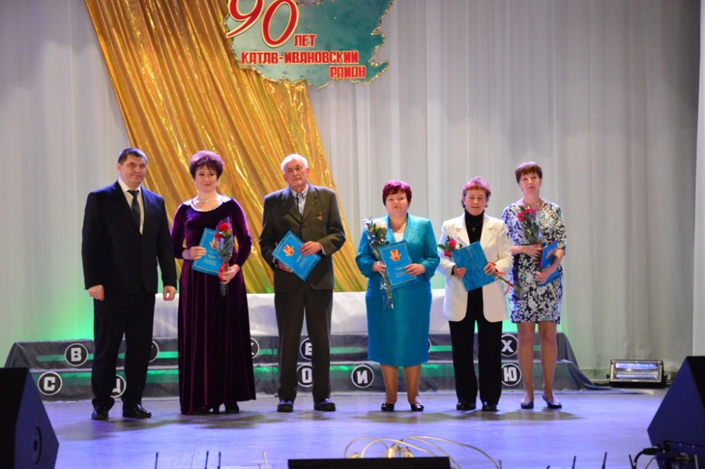 За многолетний добросовестный труд и в связи с 90-летием со дня образования Катав-Ивановского района почетными грамотами главы муниципалитета награждены Елена Кастрица, заместитель директора по учебно-воспитательной работе школы № 1 Юрюзани, Надежда Юрина, учитель технологии школы № 1 Катав-Ивановска, Вера Соловьева, главный экономист отдела экономического анализа и бюджетирования АО«Катавский цемент», Александр Пухляков, врач-невролог «Районной больницы Катав-Ивановска», Ольга Васильева, заместитель начальника Управления социальной защиты населения, Галина Химанова, ветеран труда, Андрей Баринов, технический директор АО «Катав-Ивановский приборостроительный завод», Людмила Иванникова, заведующая клубом поселка Совхозный, Сергей Трегубенков, главный механик ИП Волков, Александр Аристов, директор по производству ИП Волков, Вадим Яхин, модельщик по деревянным моделям ООО «Катав-Ивановский литейный завод». Благодарности главы вручены Оксане Курдаковой, педагогу-психологу детского сад № 16 «Кораблик», Владимиру Морданову, начальнику литейного цеха ООО «Катав-Ивановский литейный завод», Алле Долининой, заведующей хозяйством ИП Волков, Наталье Ахметовой, директору дома культуры Бедярышского сельского поселения, Александру Бурову, трактористу транспортного отдела АО «Катав-Ивановский приборостроительный завод», Лине Шаминой, ветерану труда, Галине Стрижовой, педиатру детской больницы Катав-Ивановска, Татьяне Жуковой, начальнику отдела охраны труда, промышленной безопасности и экологии АО«Катавский цемент», Галине Меркурьвой, директору МКУ «Центр помощи детям, оставшимся без попечения родителей», Фардане Целмс, учителю биологии, химии, географии школы № 5 Катав-Ивановска.