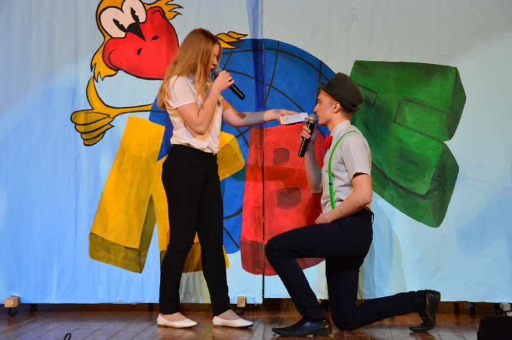 Первым конкурсом было «Приветствие». Право открыть фестиваль досталось команде «Киты юмора». Понятное дело, выступать первым всегда сложно, но важно задать тон. И у команды Индустриального техникума это получилось не с ходу, а лишь в процессе удалось распечатать обстановку в зале, послать позитив зрителям и вырвать первые аплодисменты. Болельщики поддерживали своих друзей, однокурсников очень активно. Да и команда подобралась самая что ни на есть «кавээновская»: по образам и стилю – другим на зависть. Но не все ребята смогли раскрыться, поскольку в ролях были заняты лишь лидеры. Скидку делаем на дебют, а в общем команда техникума смотрелась молодцом!