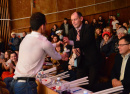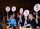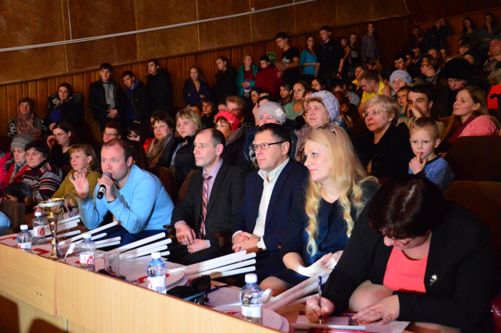 Но вернёмся в «Октябрь». Команды и капитаны – Максим Барабанщиков, Анна Немытова, Андрей Мещеряков, Евгений Воробьёв – немножко волнуются, но готовы к игре. В роли ведущего программы выступил художественный режиссёр Досугового центра Александр Мусин. В жюри работали: Павел Решетов, заместитель главы района, председатель жюри, Юрий Воробьёв, начальник отдела по физической культуре спорту и молодёжной политике, Елена Юрина, депутат городского Совета депутатов, директор Второй средней школы Катав-Ивановска, Александр Донцов, главный редактор медиа «Авангард», и ваша покорная слуга. Оценивали «кавээнщиков» по пятибальной системе, для этого организаторами были изготовлены удобные таблички, чтобы всем было видно, какие баллы ставит каждый судья. Правила игры – настоящие, критерии – тоже, словом, всё, как в привычном телевизионном КВН.