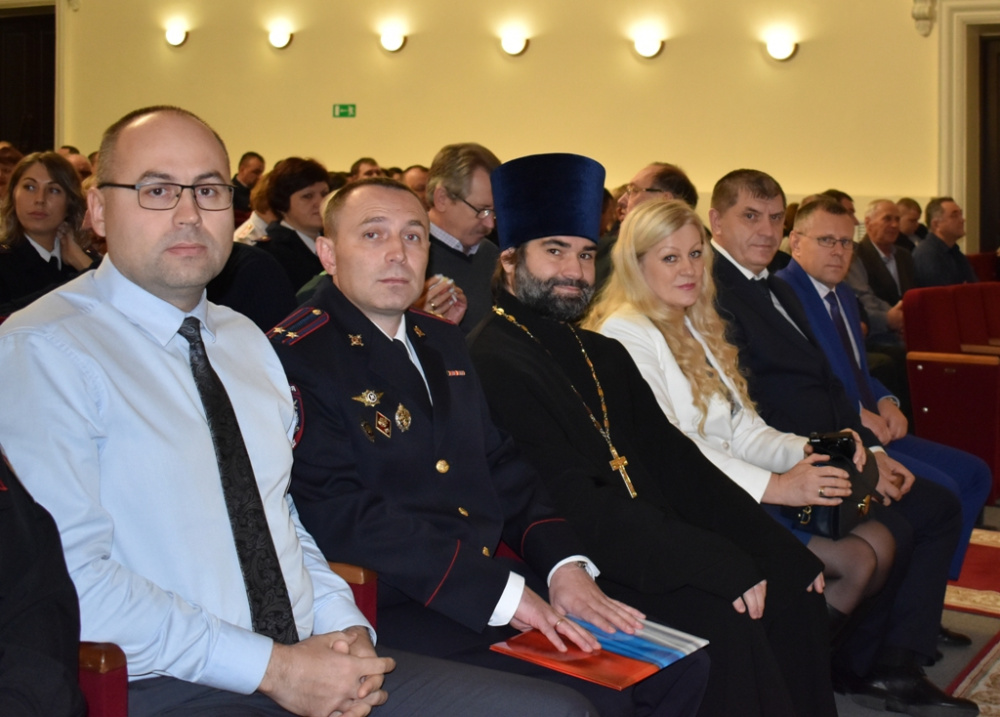 В адрес коллектива ОВД прозвучало много добрых слов благодарности за работу. Ведь на вверенной территории мы – партнёры, и очень важно, чтобы здесь торжествовали закон и порядок, чтобы граждане чувствовали себя в безопасности. Со сцены к личному составу обратились: председатель Собрания депутатов муниципалитета Николай Рудаков, заместитель главы района Павел Решетов, исполняющий обязанности главы Юрюзани Денис Голубев, военком Владимир Галкин, благочинный, настоятель Иоанно-Предтеченского храма о. Александр Симора, председатель ветеранской организации ОВД Павел Ульянов.