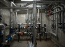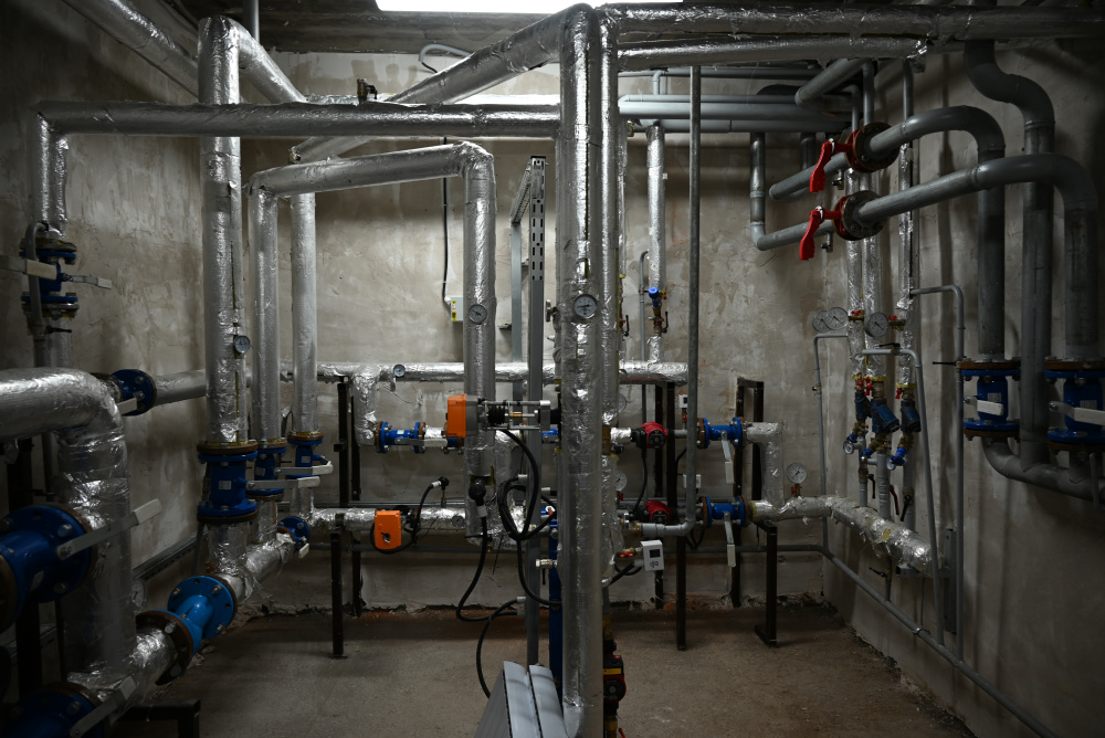 На цокольном этаже расположится спортивный блок. Там также проводятся отделочные работы, сложности вызывают отсыревшие стены. Сначала их сушат тепловыми пушками и только после этого отделывают.