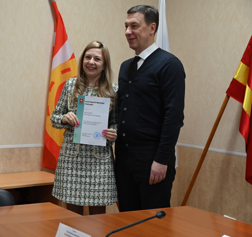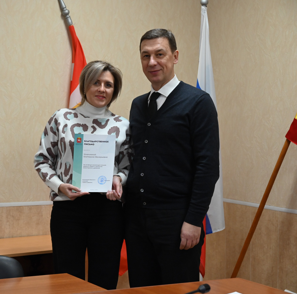 Перед обсуждением текущих дел Глава района вручил благодарственные письма за активную жизненную позицию, верность идеям и ценностям волонтерского движения Екатерине Колечкиной, Екатерине Донцовой и Елене Буяльской.