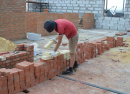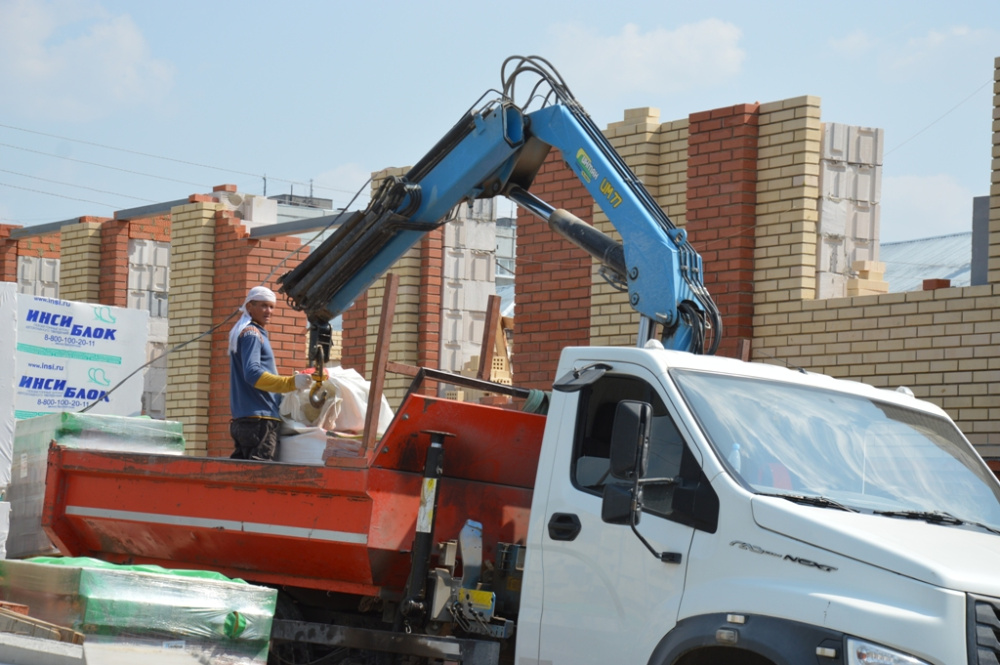 На стройке очень оживленно. Одни воздвигают стены и облицовывают здание, другие мешают раствор, носят стройматериалы и кирпичи для укладчиков. Работа кипит.