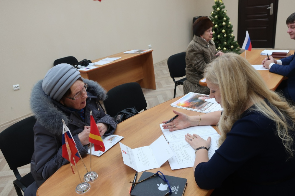 У меня, как у руководителя Общественной приёмной Губернатора, встречи с населением начались значительно раньше назначенного времени, - это значит с утра. Для удобства граждан был оборудован зал на первом этаже административного здания Катав-Ивановска, чтобы пожилым людям не подниматься по неудобной лестнице на второй этаж.И диалог с жителями мы вели вместе с главой города Иваном Норко – этот формат эффективный, многие проблемные вопросы решались на месте, в день обращения. Для каждого из обратившихся были подготовлены небольшие полезные сувениры, а для настроения наряжена новогодняя ёлка, все желающие могли ещё и сфотографироваться…