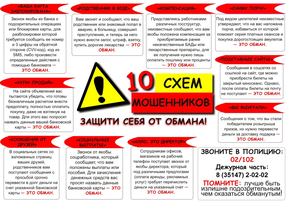 Чтобы не оказаться жертвой мошенников необходимо знать следующее:
