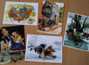 В коллекции Ирины Киприяновой есть карточки с сюжетами известной финской художницы Инге Лоок. Иллюстратор создала серию веселых открыток про озорных подружек («Аnarkistiset mummot», с финского — «Бабушки-анархистки»). Старушки Инге Лоок умеют радоваться жизни и нескучно проводят время. Они катаются на мотоцикле, крутят обручи и сражаются на клюках.